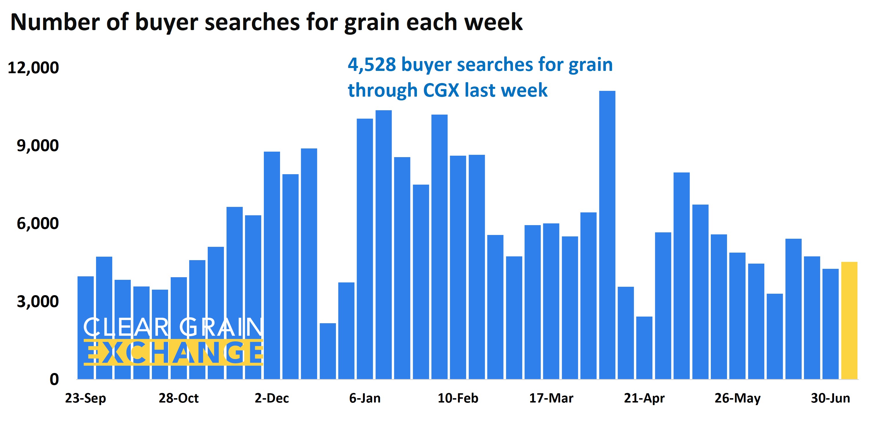 35 buyers bid for grain offered for sale on the exchange last week, and a total of 105 buyers made 4,528 searches for grain.