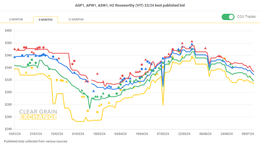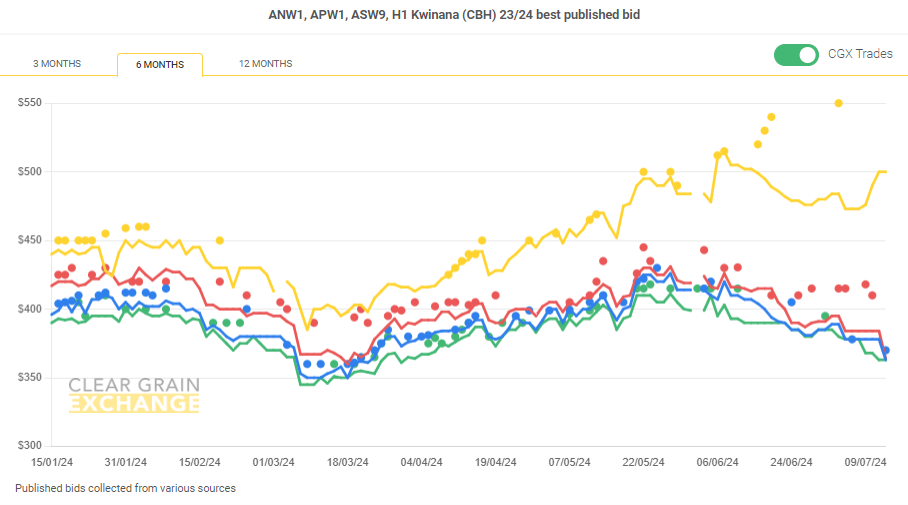 Note: GTA location differentials are used to convert prices to a port equivalent price, actual freight rates can differ particularly in the eastern states. You can offer any grade for sale to create demand.