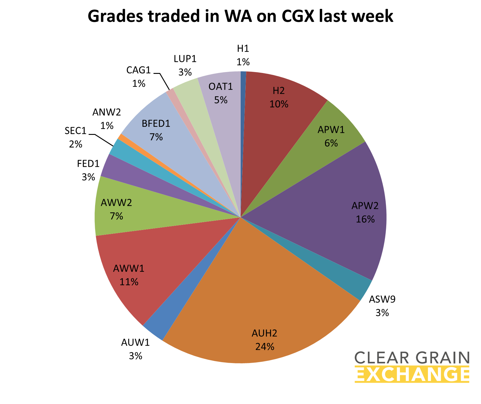 Wheat grades made up the majority of volume trading through the exchange last week as value emerged for specific grades and locations, drawing renewed buyer interest.