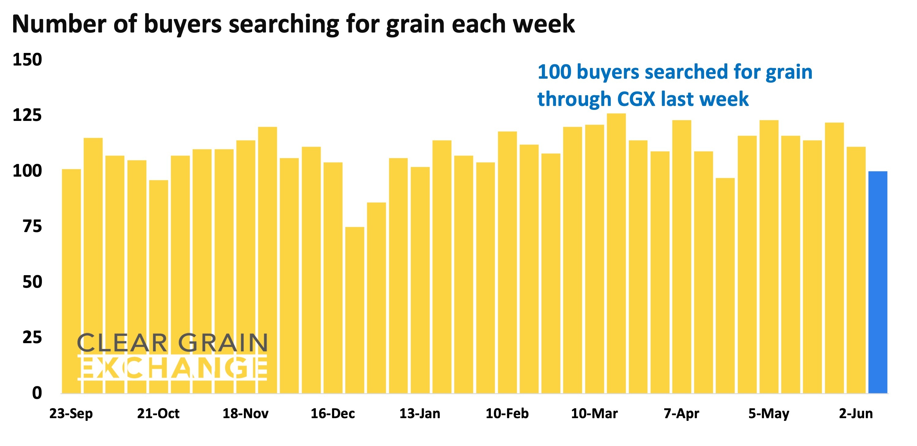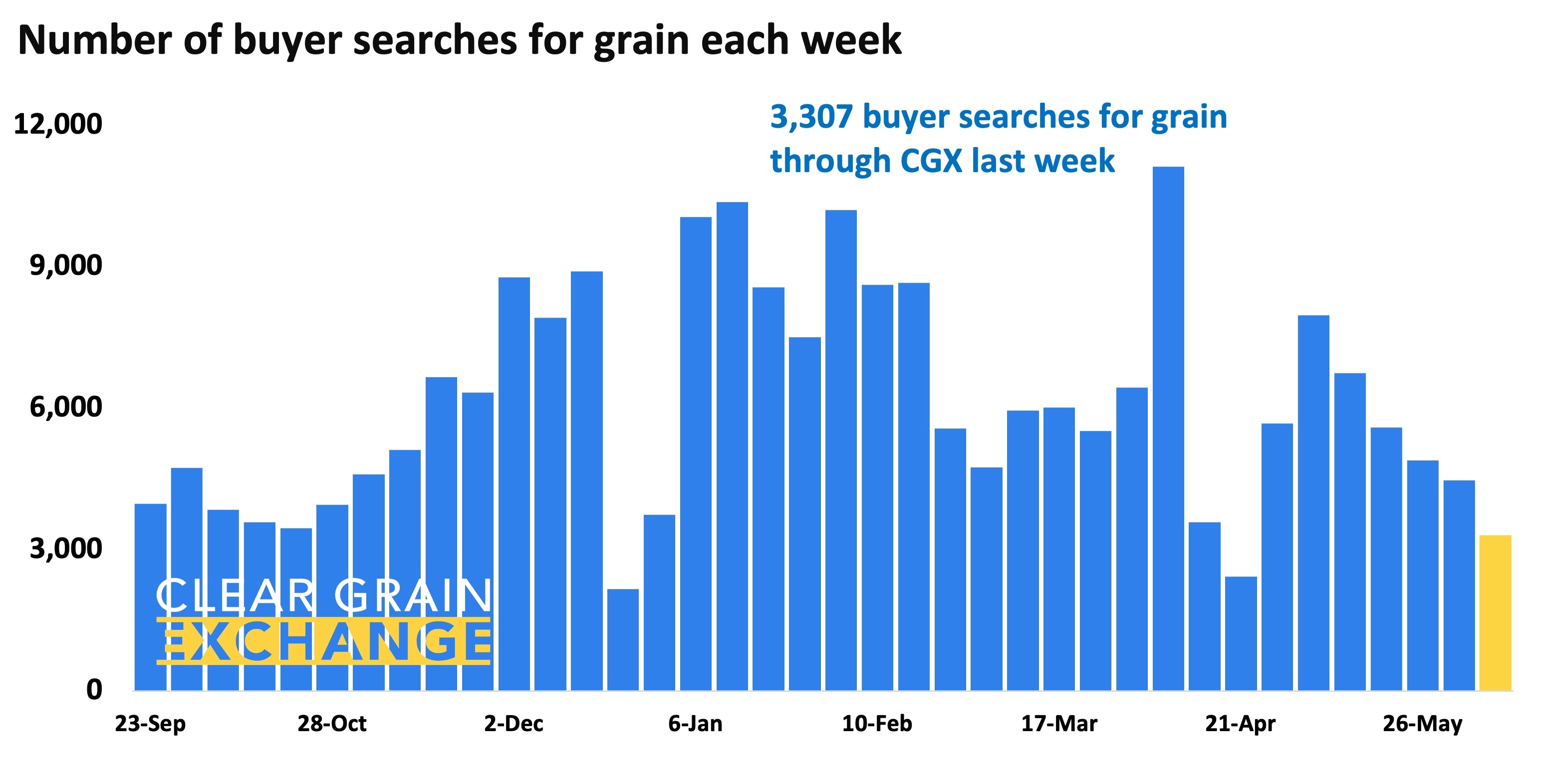 Plenty of buyers are looking for grain with 38 buyers bidding for grain last week and 100 buyers made 3,307 searches for grain listed for sale on Clear Grain Exchange and igrainX.