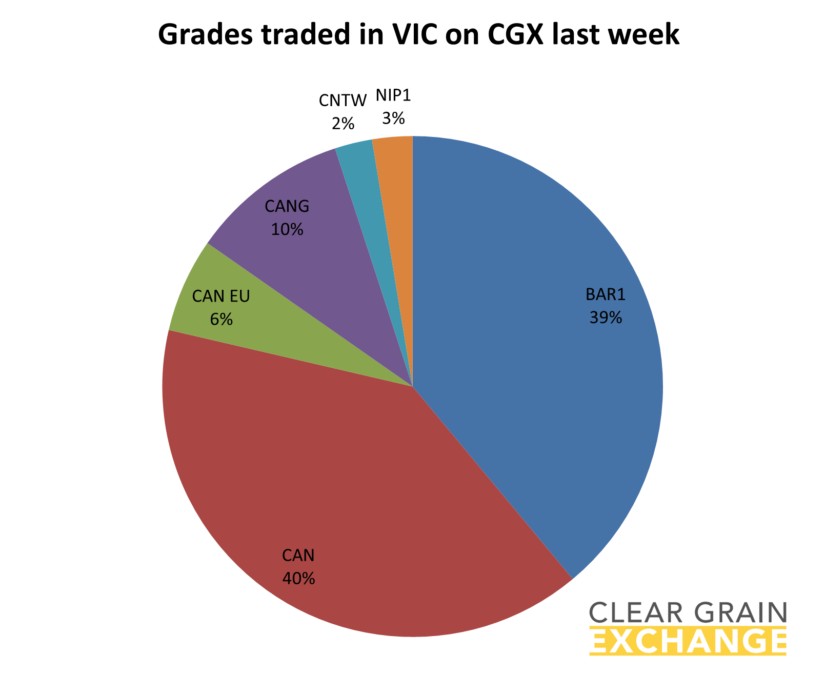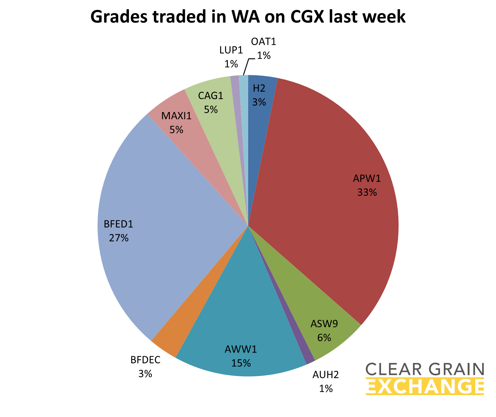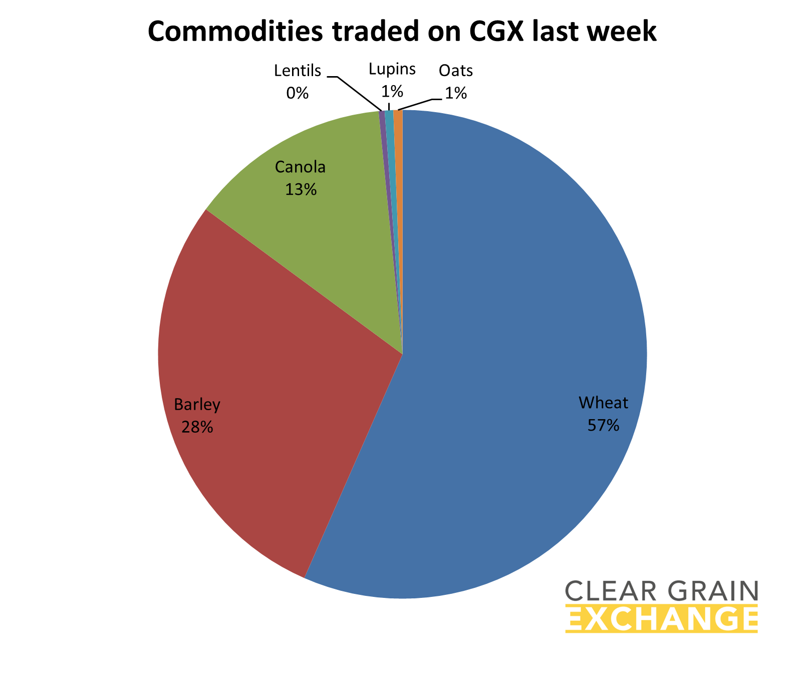 51 different selling businesses sold 21 grades of wheat, barley, canola, lentils, lupins and oats to 26 different buyers last week.