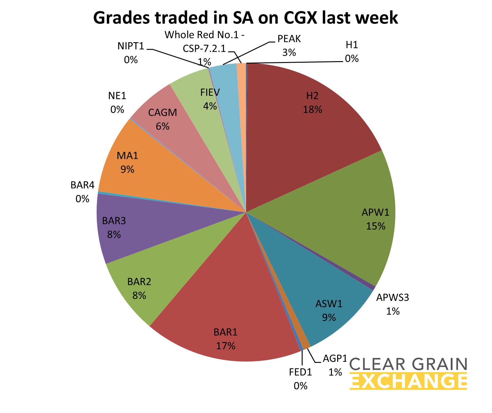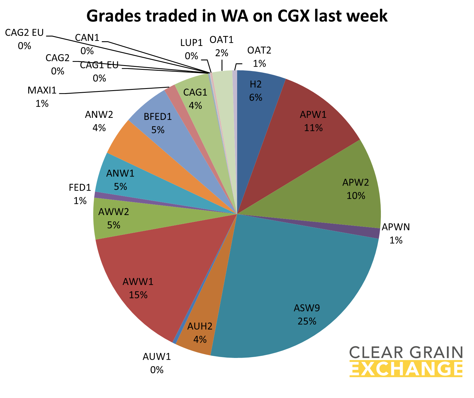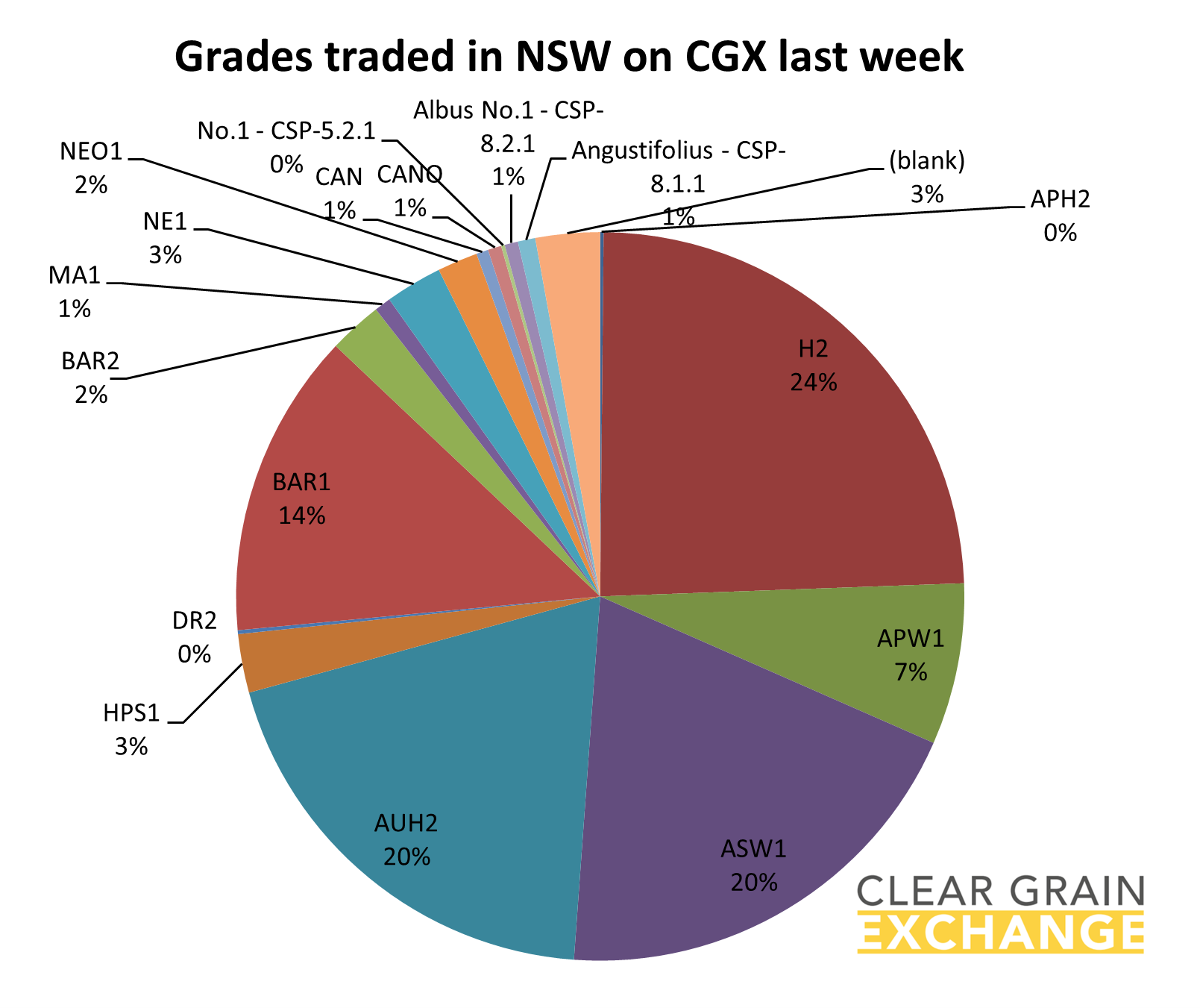 The prices traded through the exchange at a port track (eastern states) or FIS (in WA) level are provided below, but if you're reading this email you will have your own CGX account so login and use it to see what's trading, what's offered, and what's being bid at sites to help you determine the value of grain in your area.