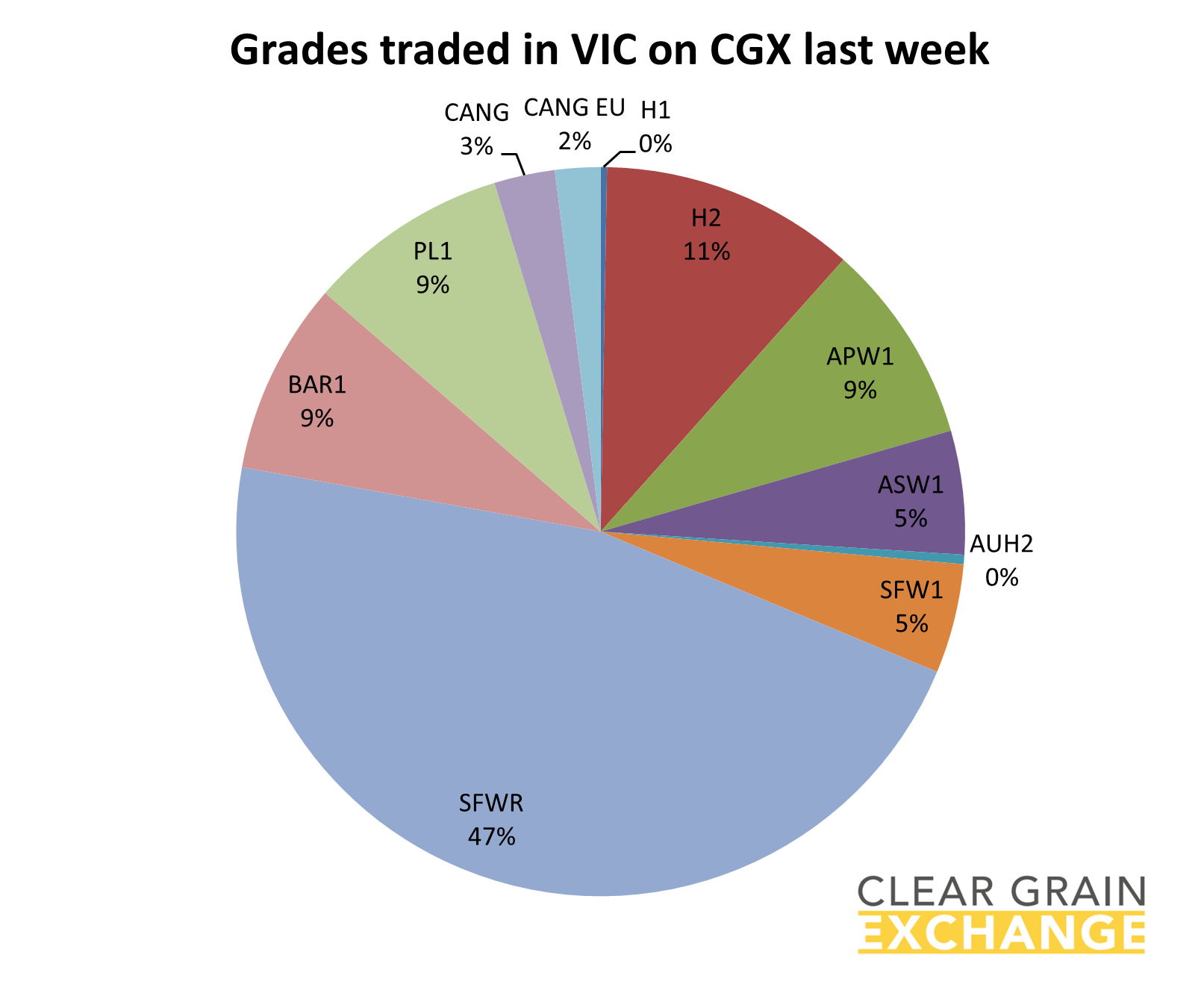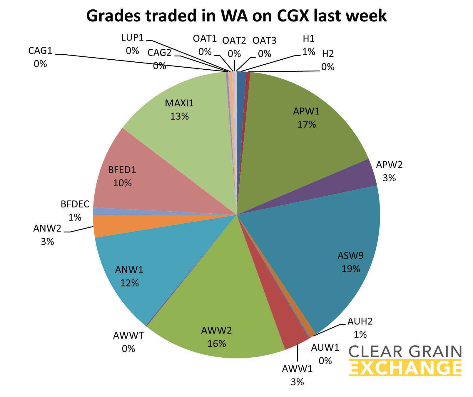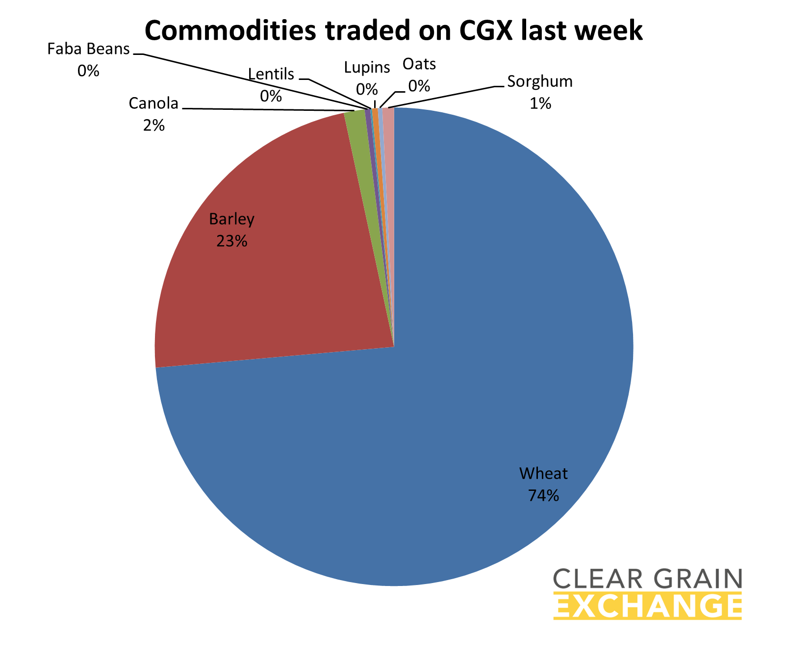 28 different buyers bid up to purchase 19 grades of wheat across Australia to make up 74% of all grain traded through Clear Grain Exchange (CGX) last week.