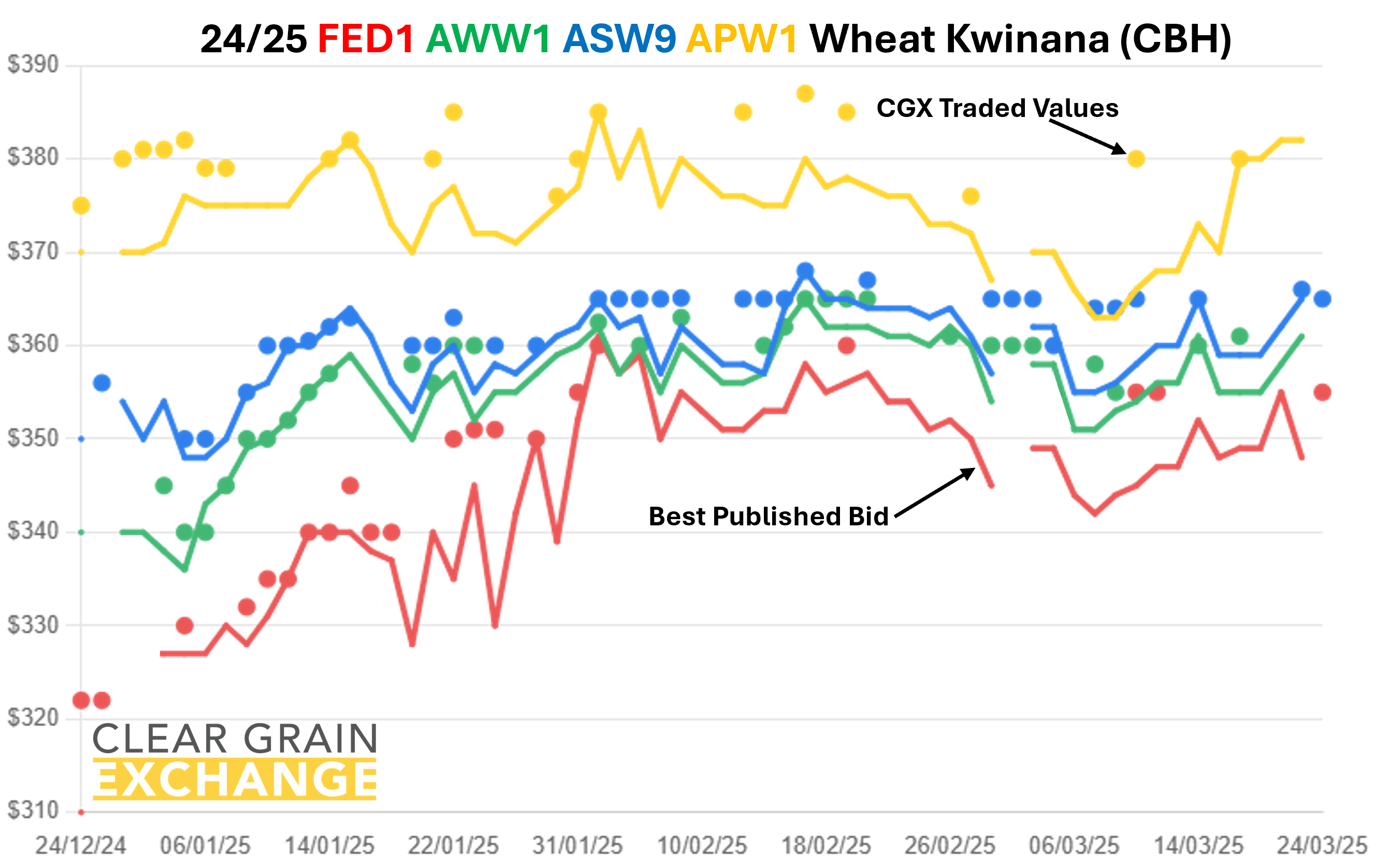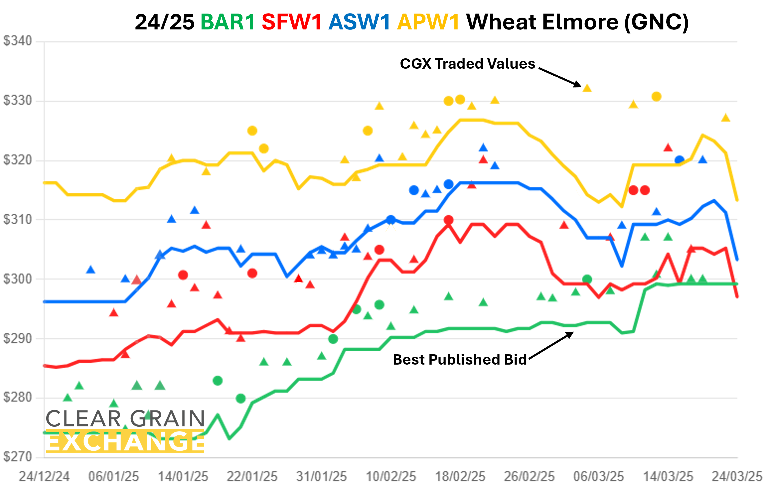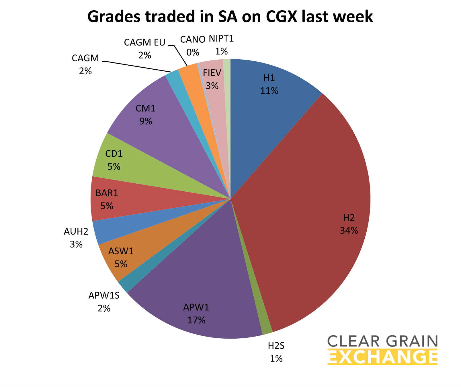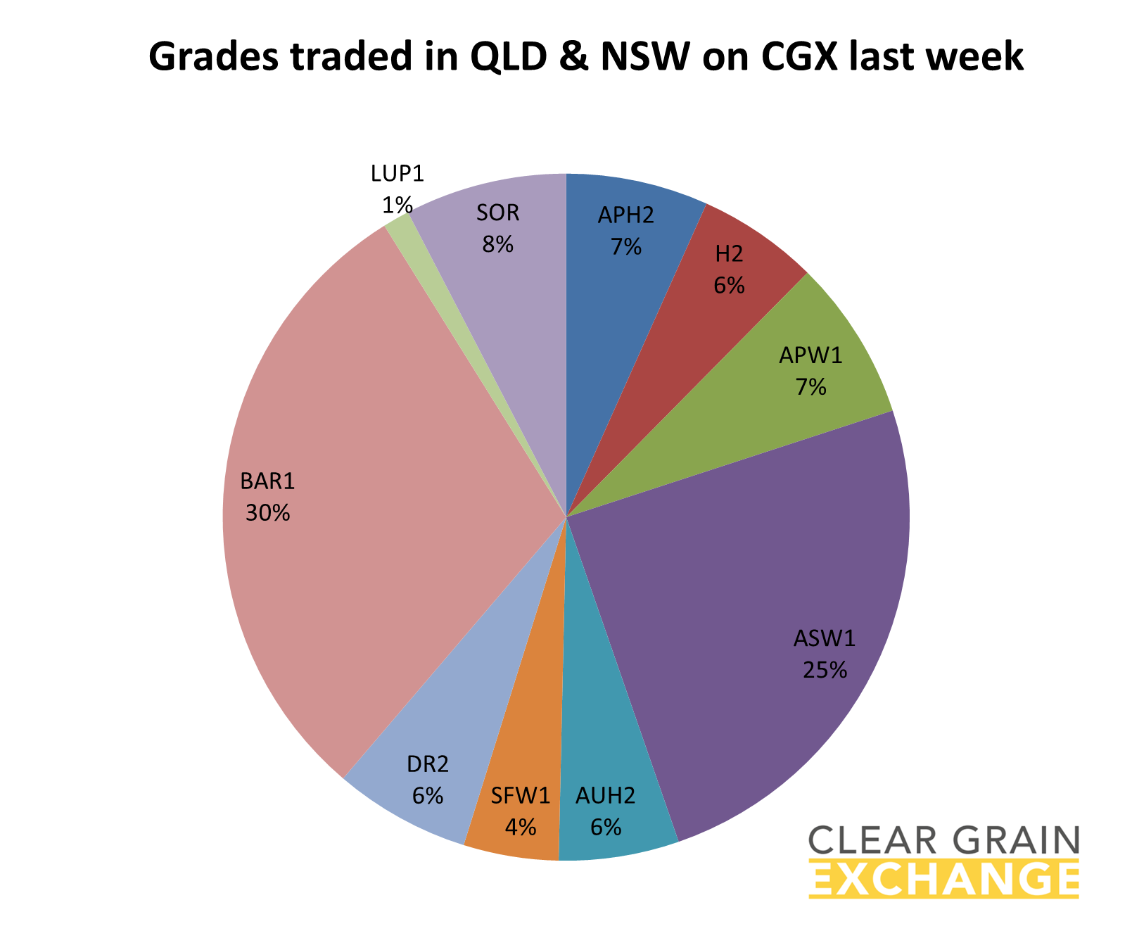 28 different buyers bid up to purchase 19 grades of wheat across Australia to make up 74% of all grain traded through Clear Grain Exchange (CGX) last week.