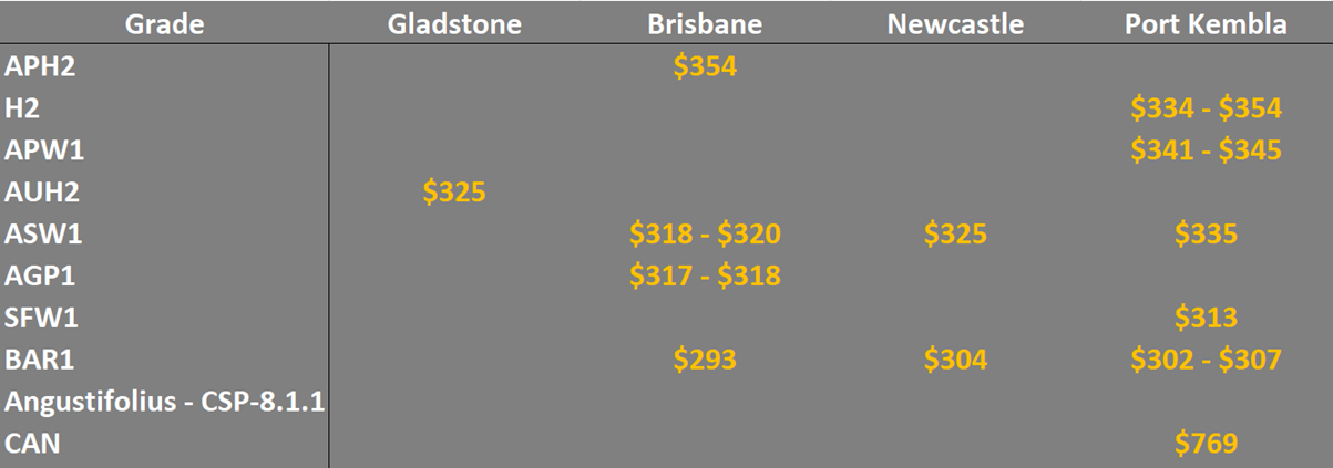 A number of grain prices have improved since the beginning of harvest with published bids of numerous wheat grades in the north east of Australia improving $15-20/t over recent weeks.