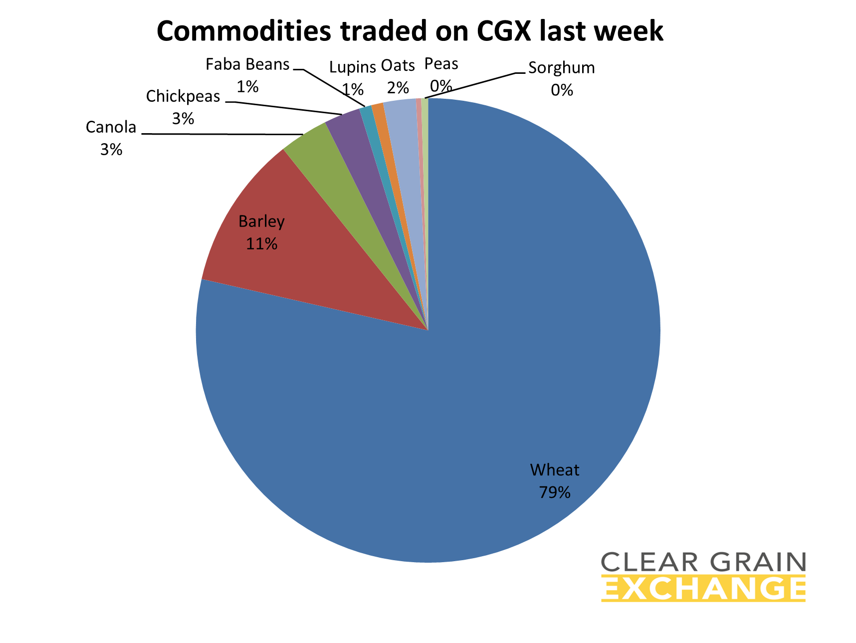 9 commodities traded - wheat, barley, canola, sorghum, oats, chickpeas, lupins, faba beans, peas