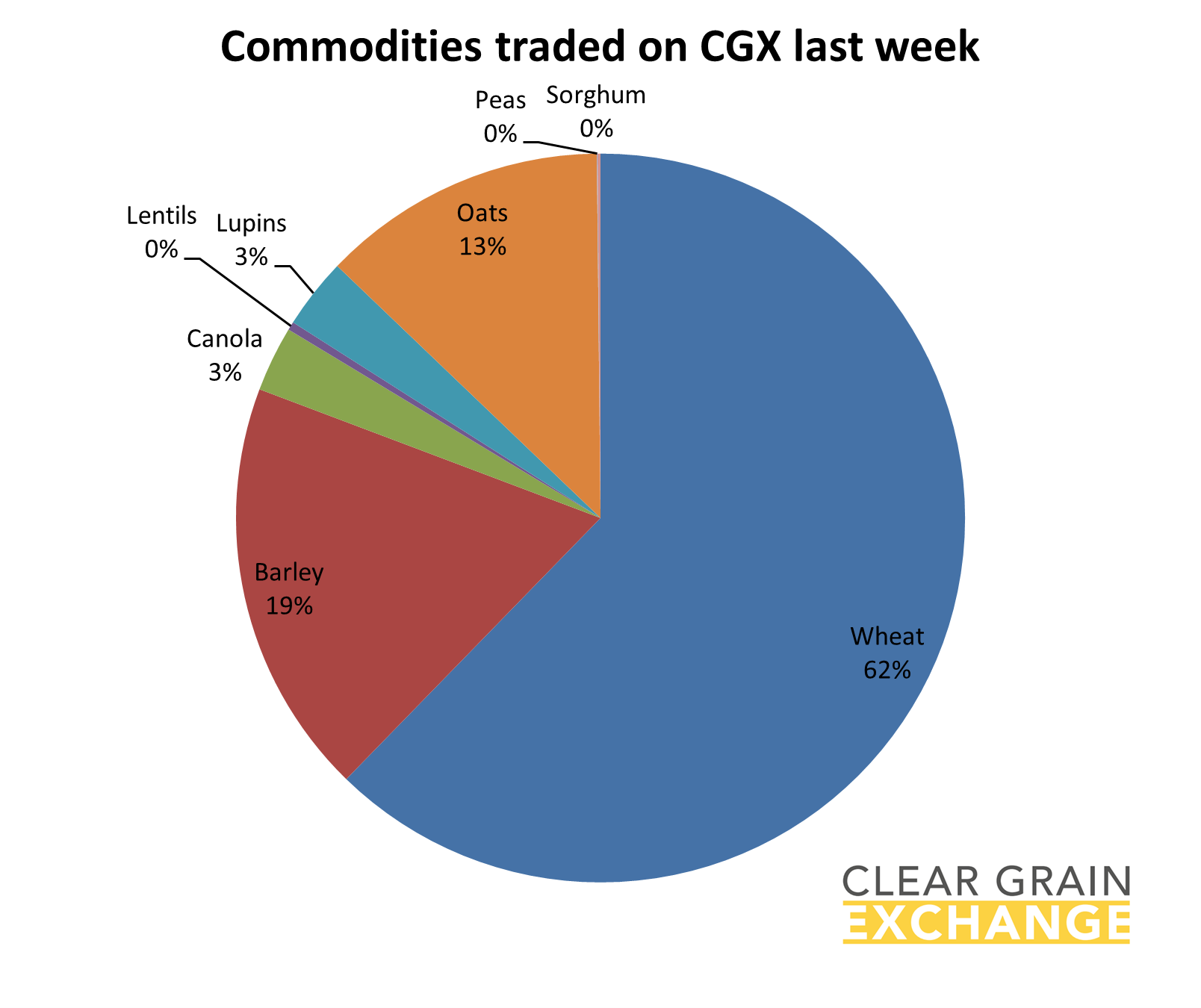 8 commodities traded - wheat, barley, canola, oats, lupins, lentils, peas, sorghum