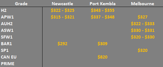 This has led to a relatively patient stance from Australian buyers of both export and domestic use and seeing them buy as they need or when they can make an international sale work.