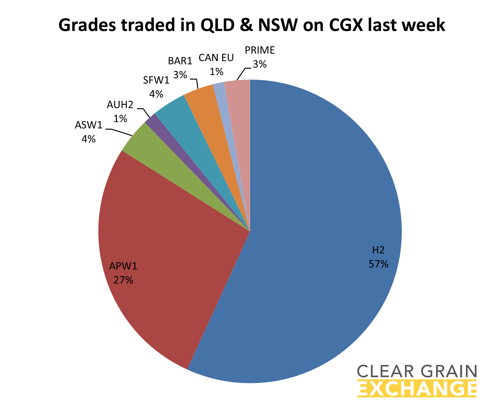 Grain sold last week through Clear Grain Exchange and igrainX averaged $8.92/t above best published bids. AUH2 wheat was selling up to $33/t over best advertised published bids from buyers in SA.