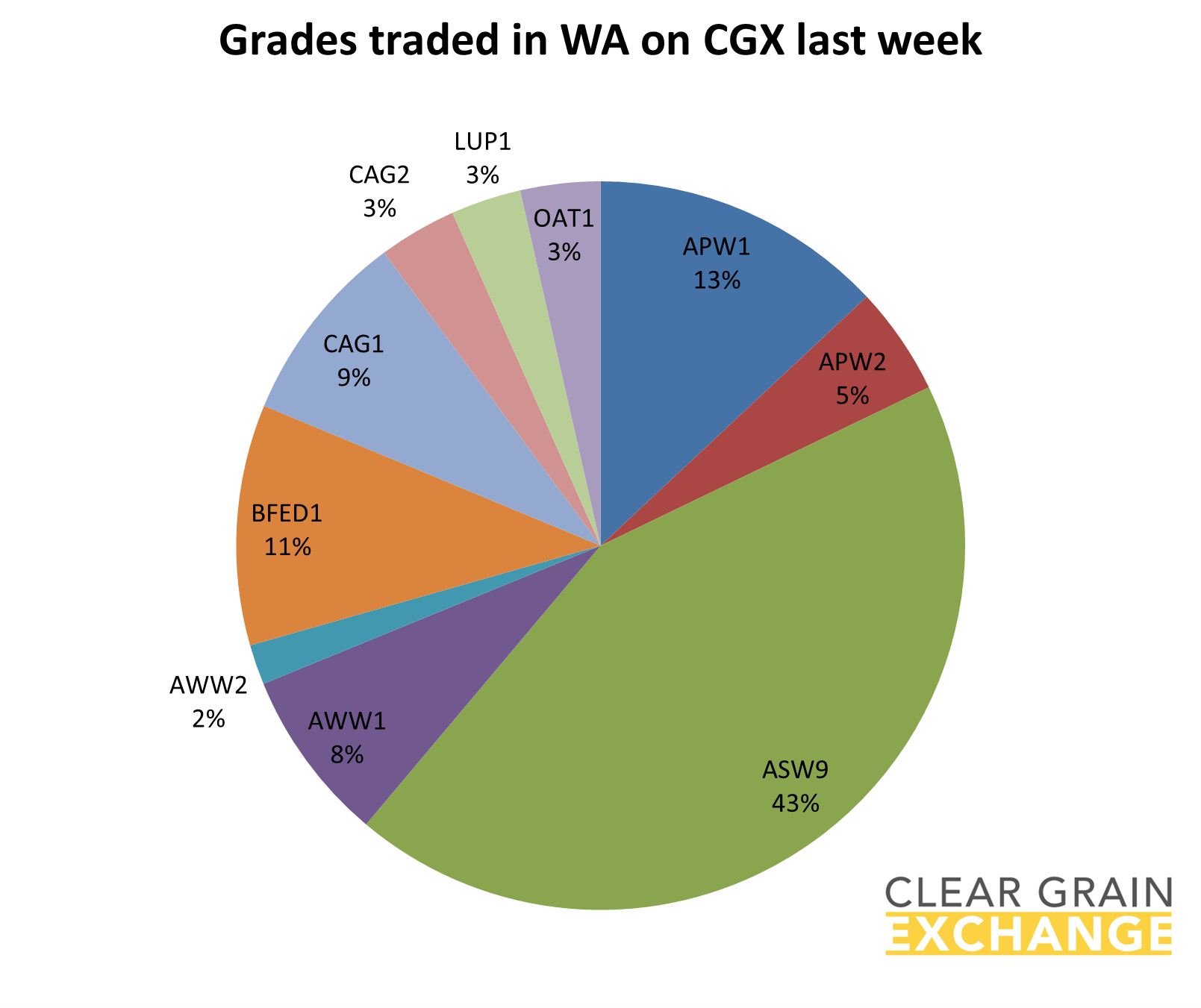 21 different grades of wheat, barley, canola, lentils, lupins, maize and oats traded across 9 port zones around Australia demonstrating the breadth of demand for grain.