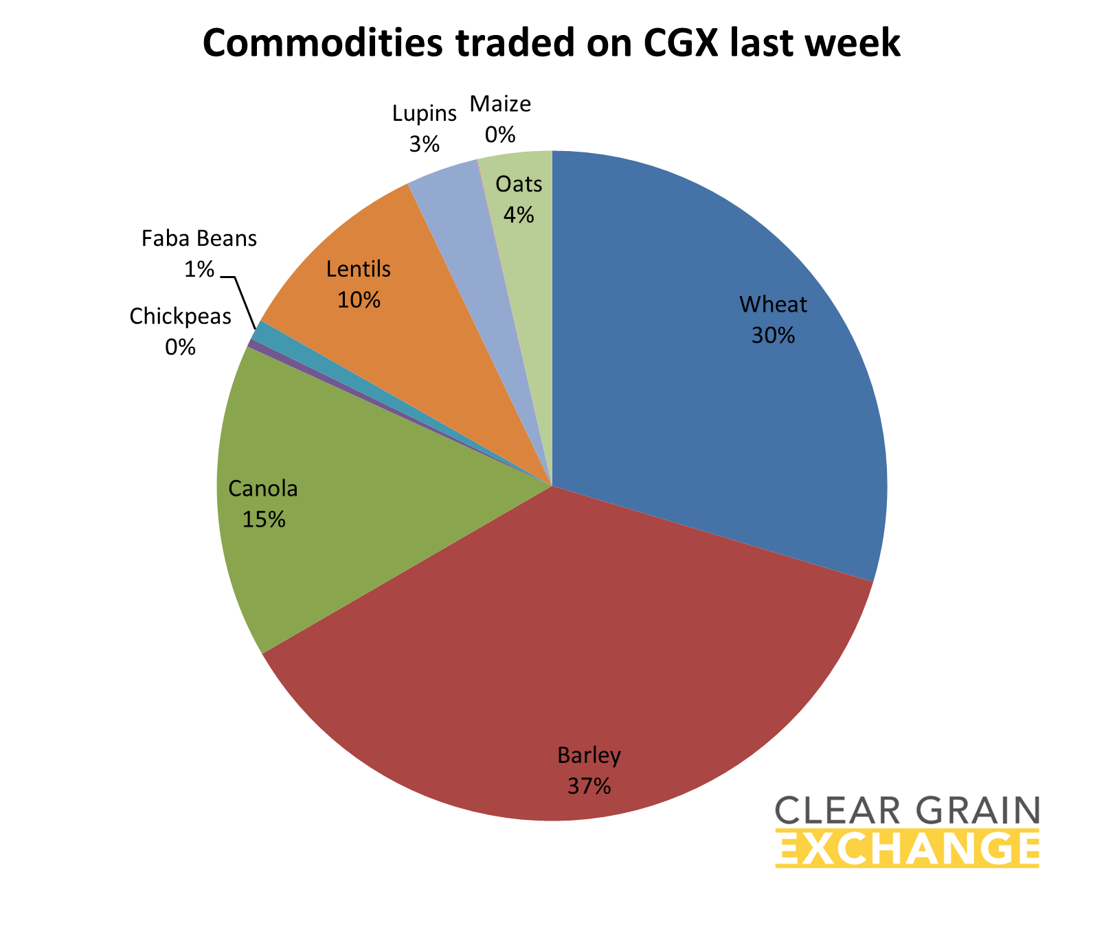 43 buyers purchased grain through Clear Grain Exchange (grain stored in warehouse) and igrainX (grain stored on-farm) last week.