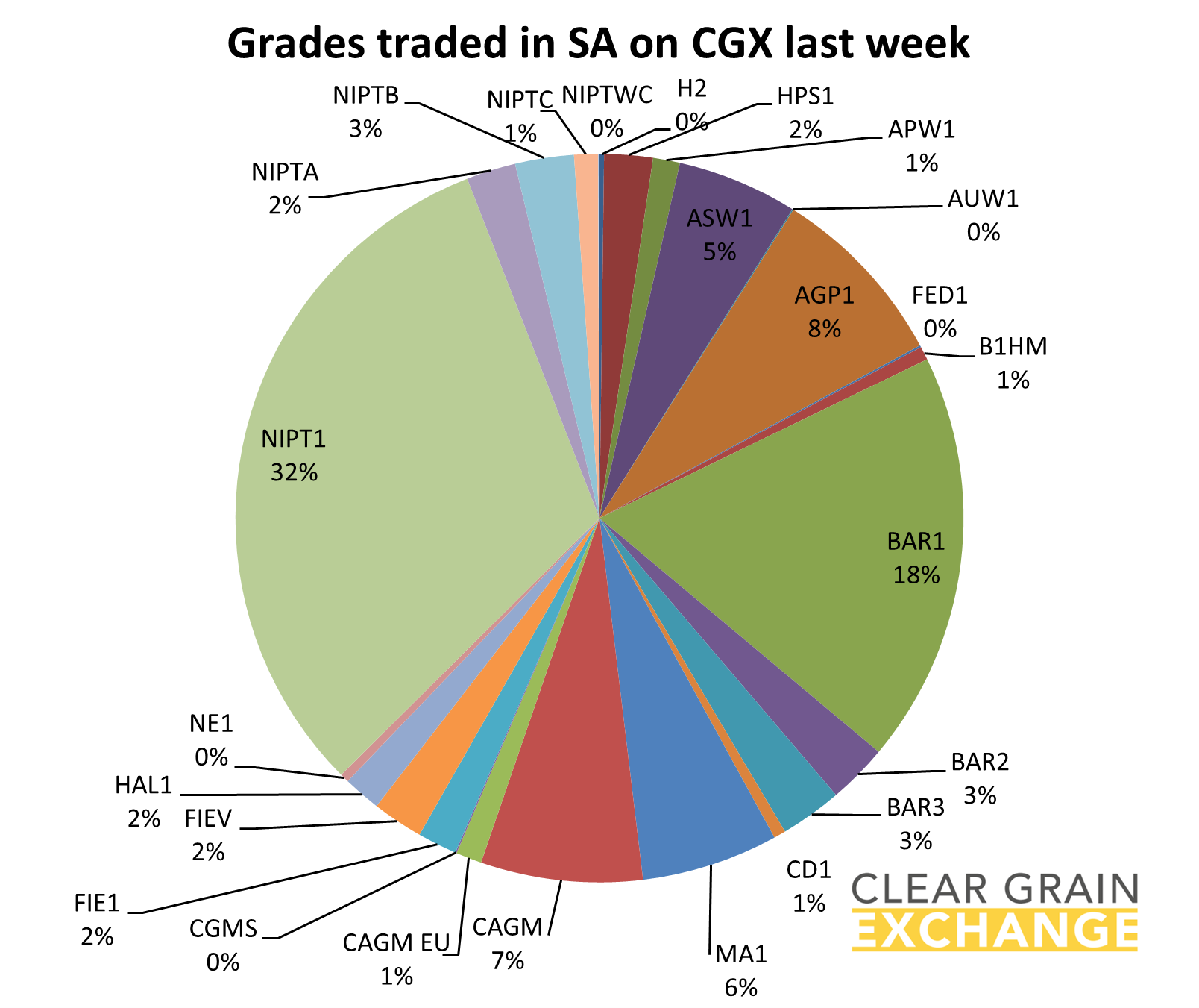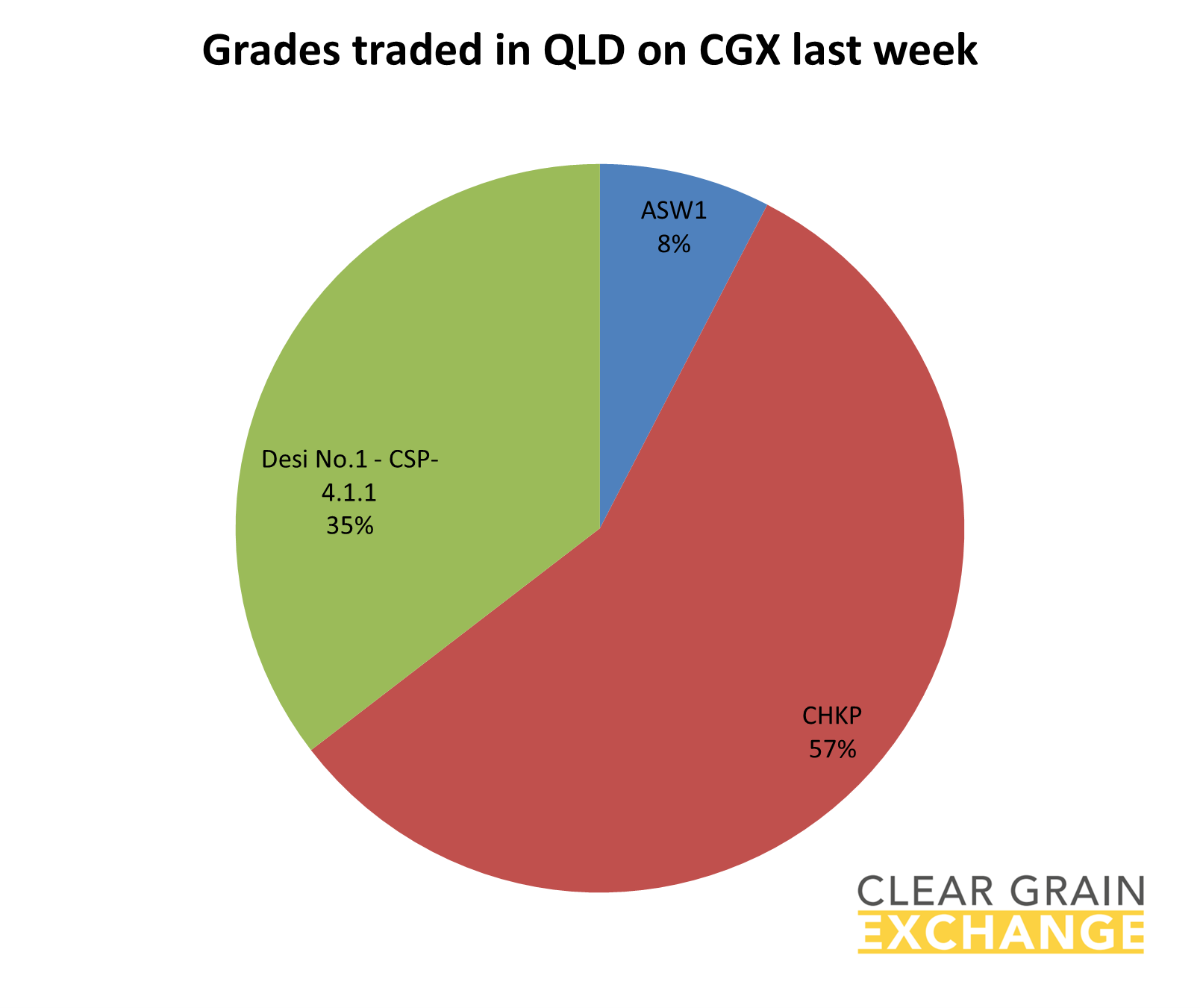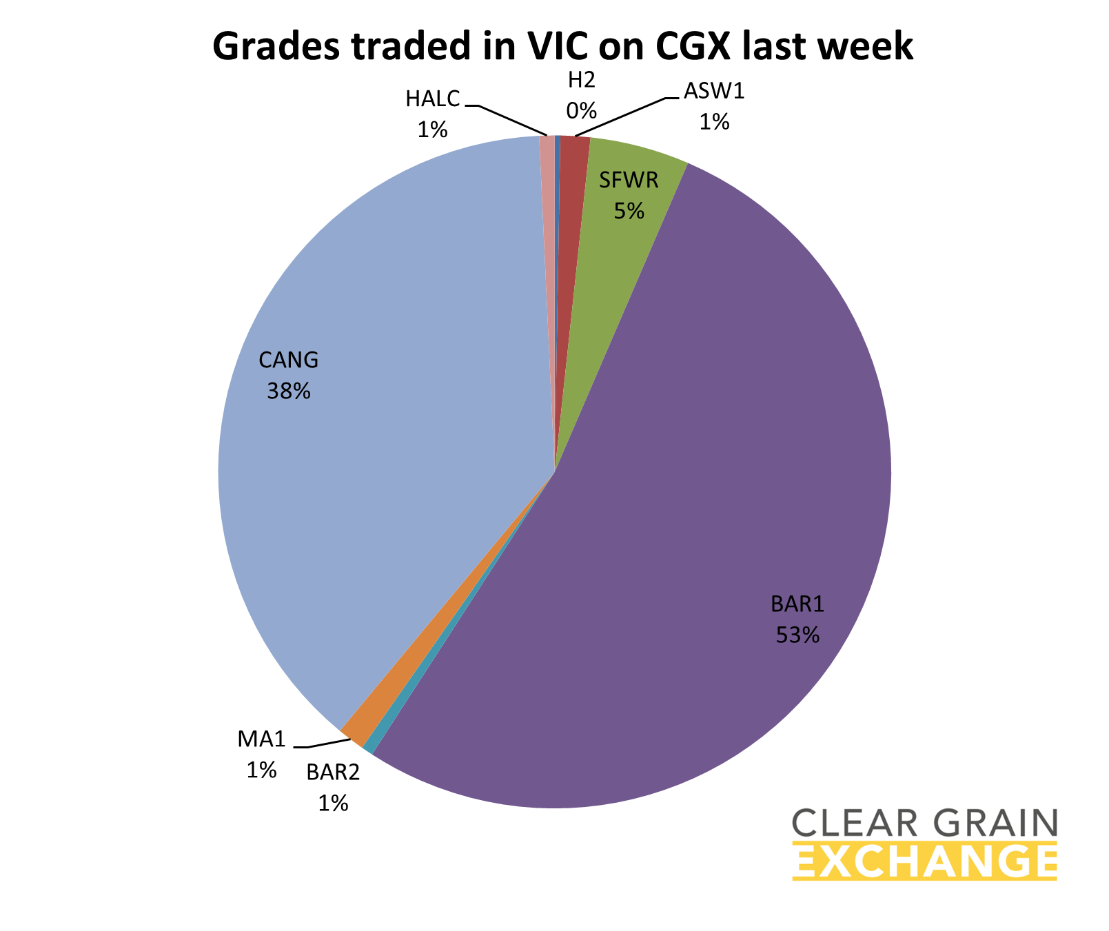 Wheat grades continued to trade across all states though made up a smaller proportion than normal of traded volume last week at 30%. Growers generally continue to offer wheat at higher prices than buyers are bidding currently and have been form on these offer levels.