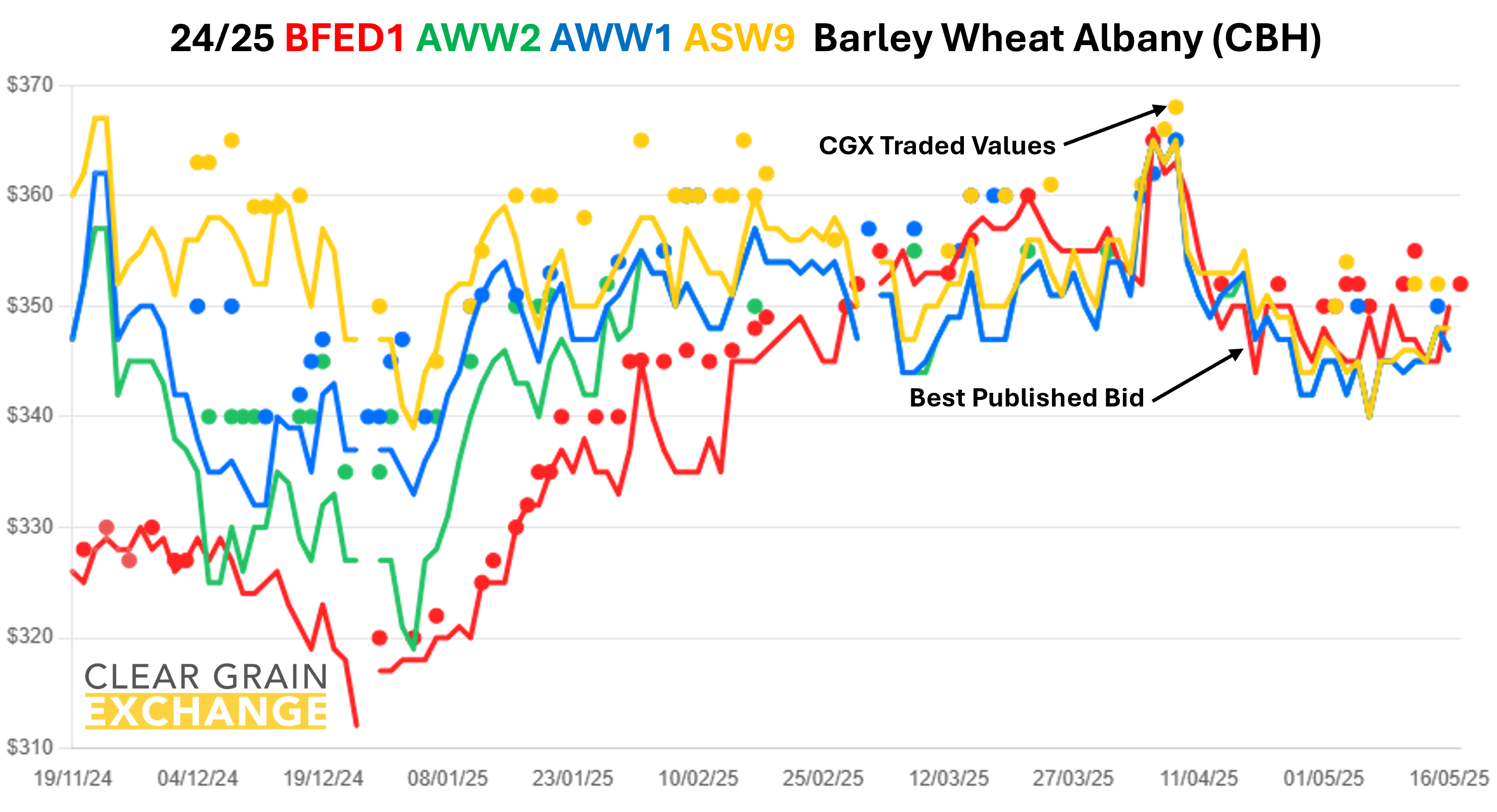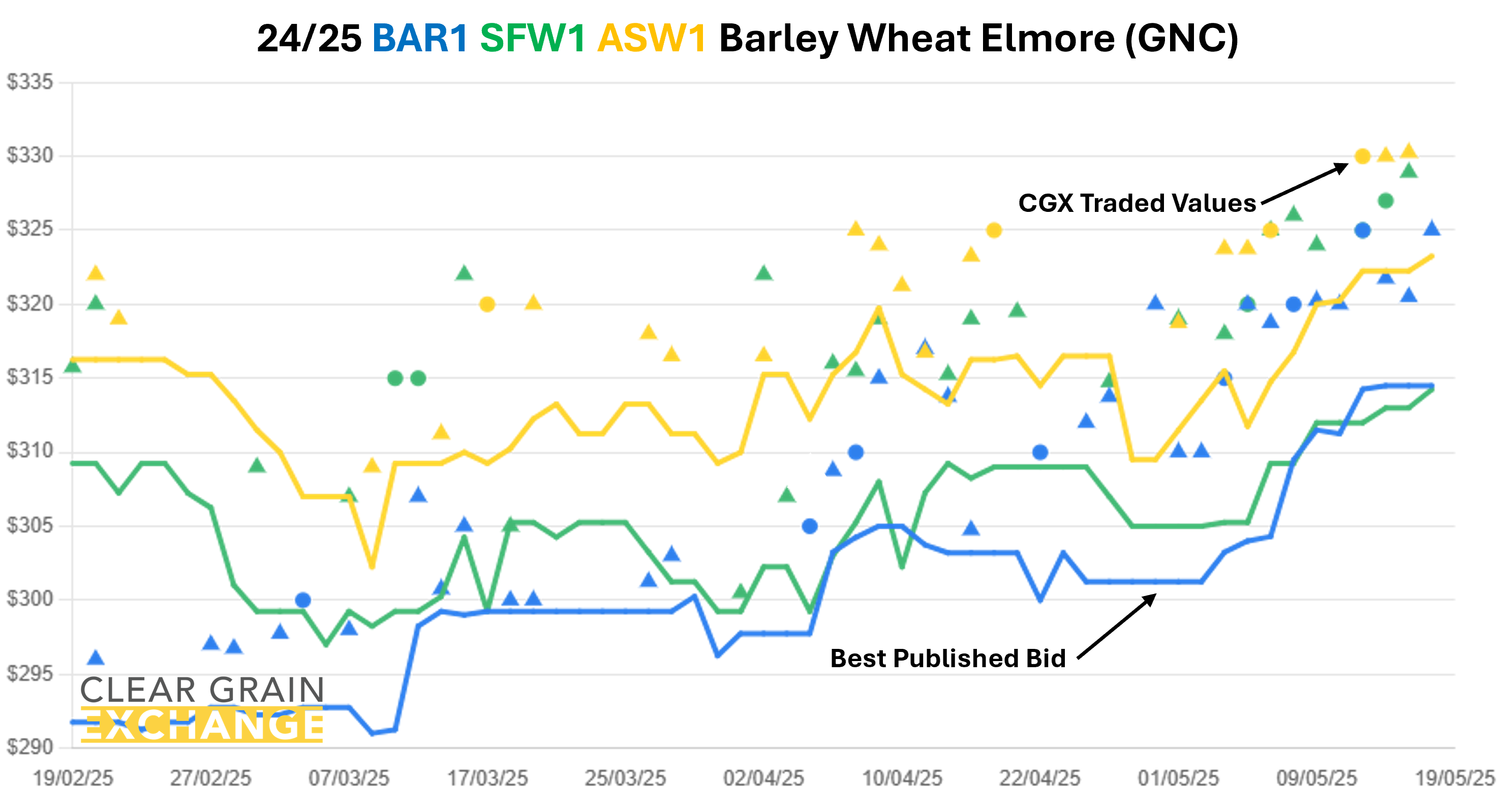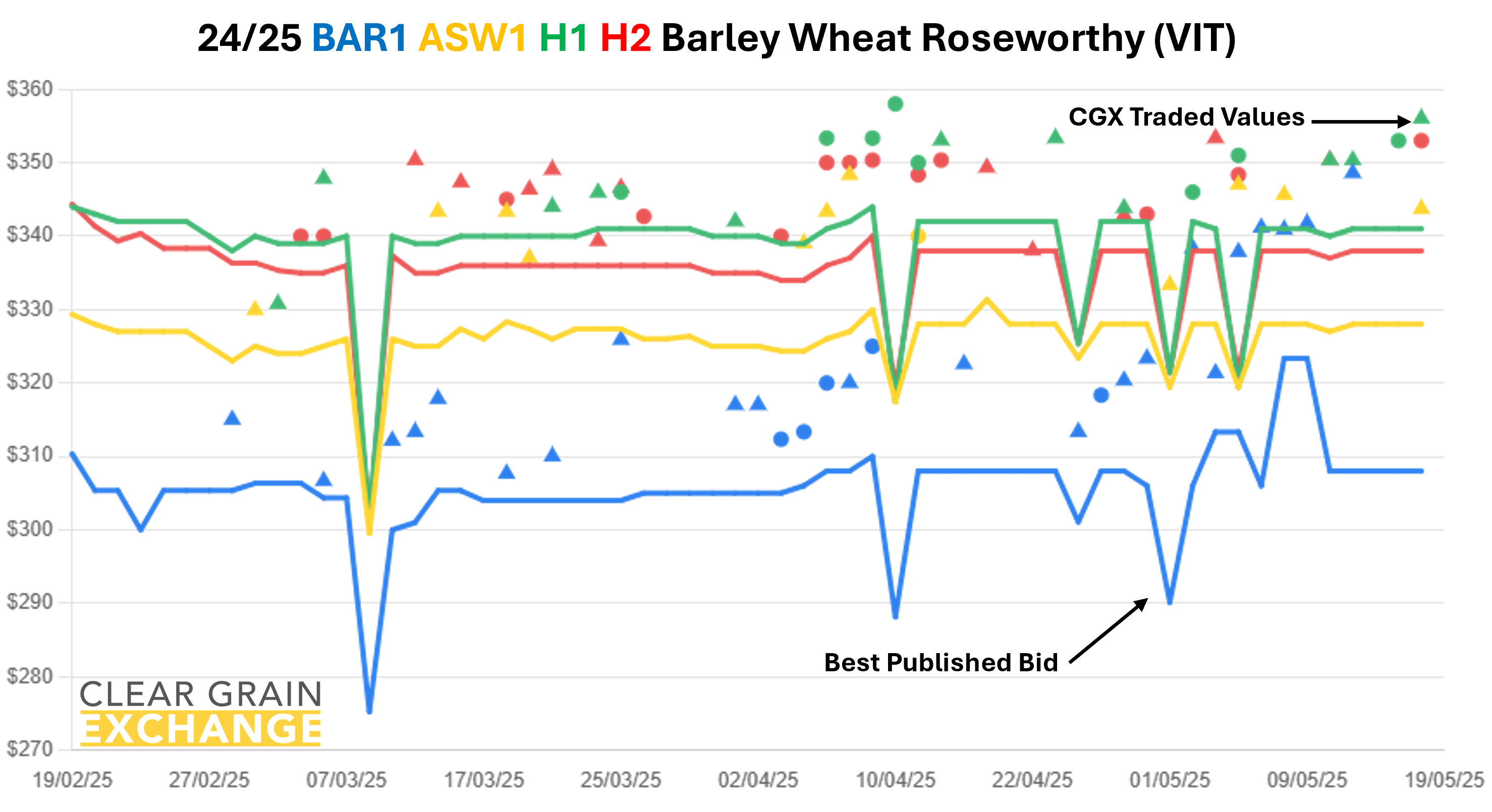 Within Clear Grain Exchange and igrainX we're seeing many growers utilise the secure settlement function to defer grain payments until after June to manage cashflow. Some are offering grain for sale in future delivery months to manage cashflow, logistics, and benefit from carries being paid in domestic markets. While others are simply pricing in the added production risk in grain this year by moving their offer prices higher.