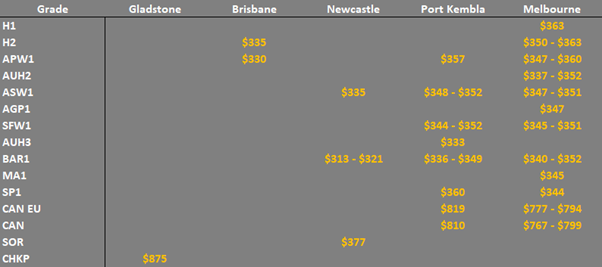 The price dynamic is reflected in ASW1 wheat trading $355/t track port in South Australia and Victoria last week versus $335/t in Newcastle and $361/t FIS port Western Australia.