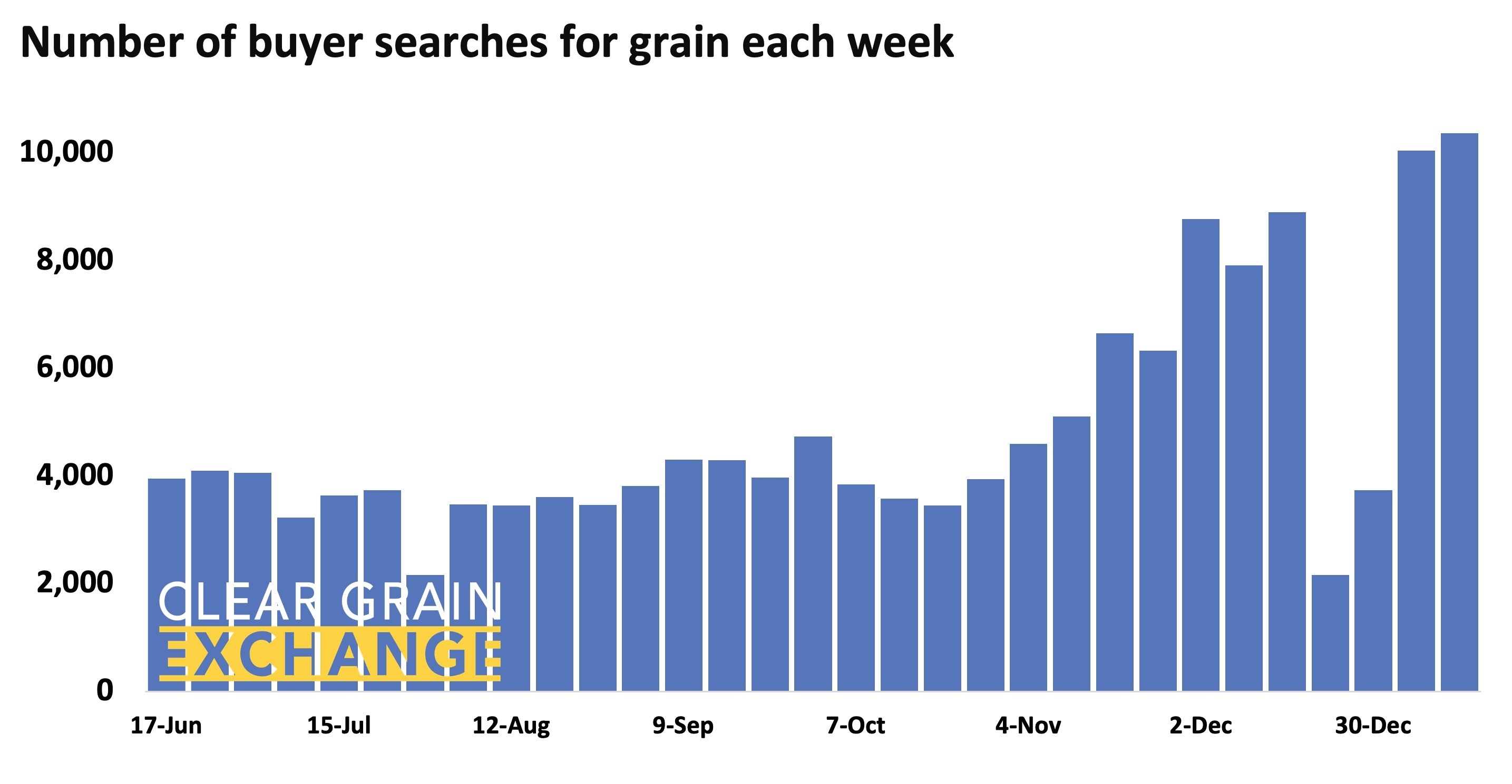 A total of 102 buyers made 10,369 searches for grain listed for sale on Clear Grain Exchange (CGX) just last week.