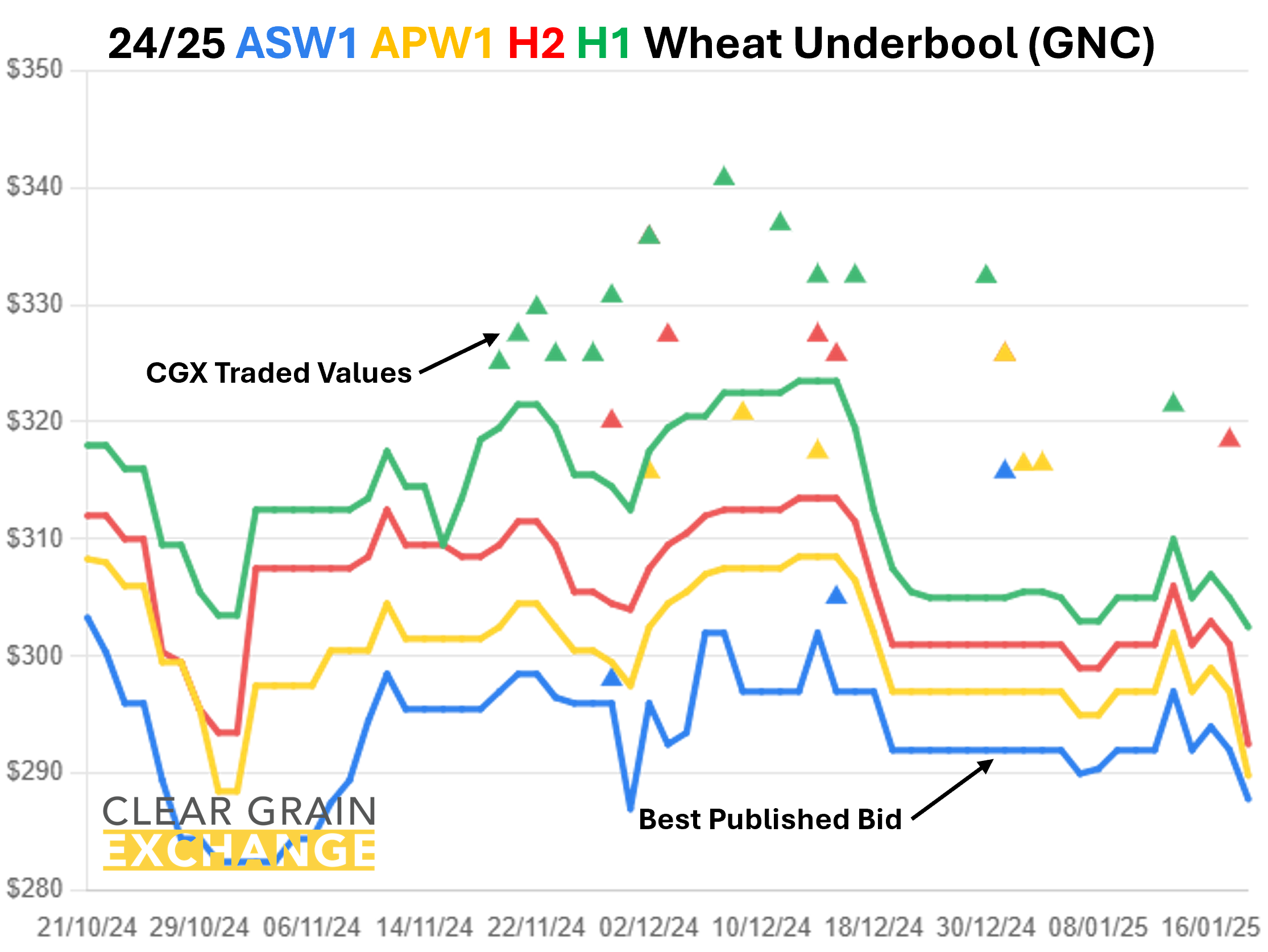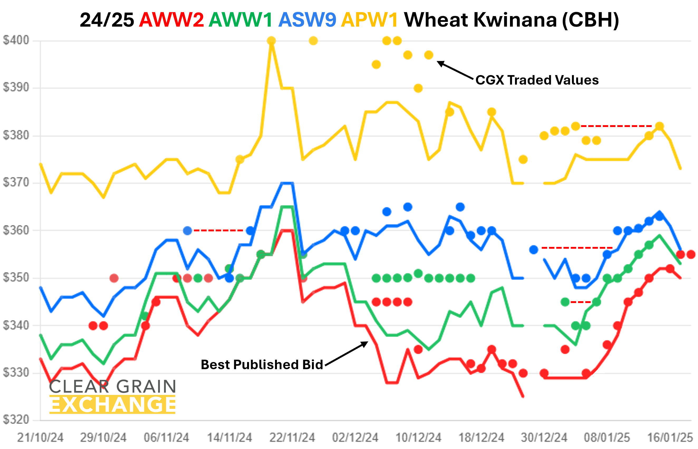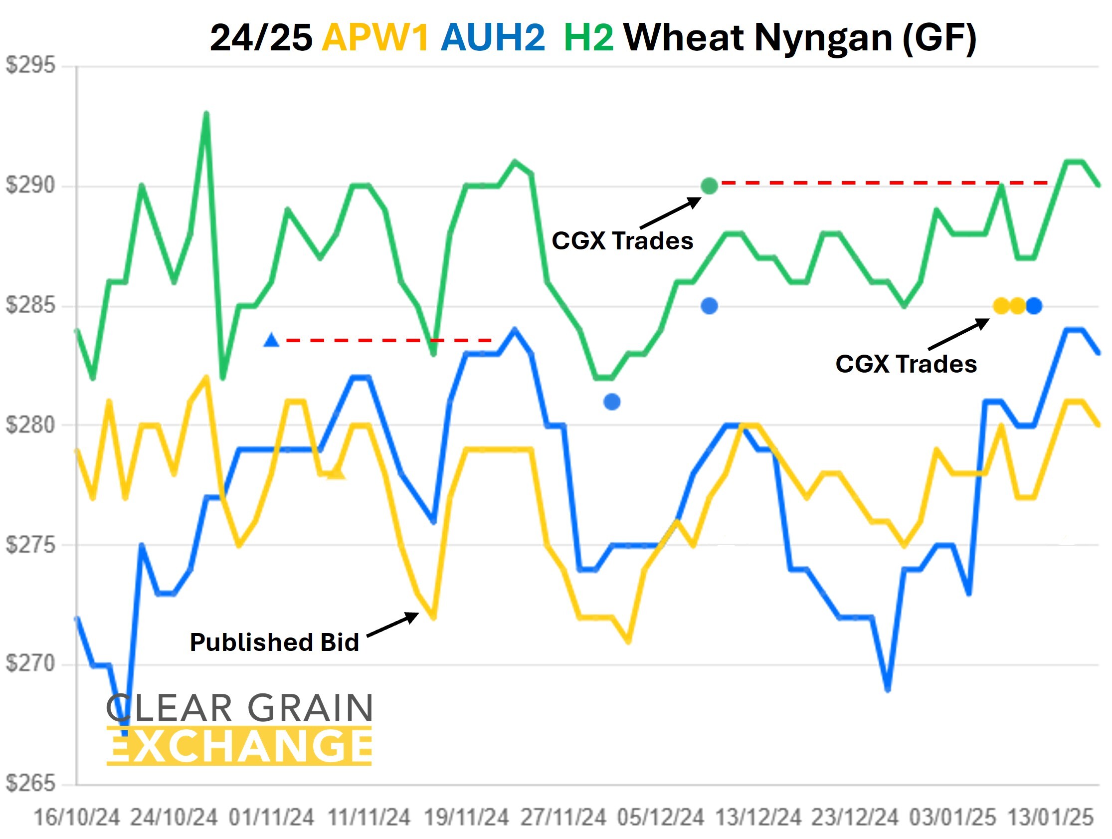 Last week 21 grades of wheat traded through Clear Grain Exchange (CGX) making up 54% of all grain traded. 33 different buyers bought those wheat grades with more searching and bidding for wheat offered for sale all around Australia.