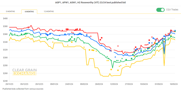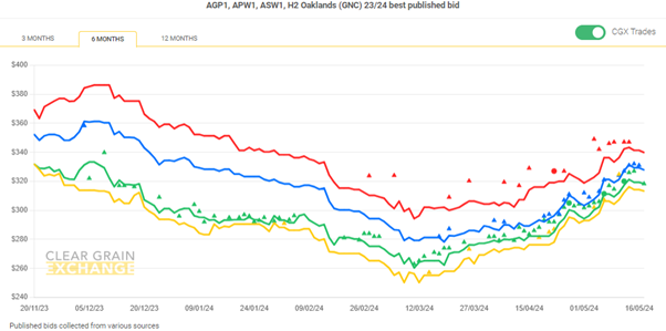 Australian grain prices continued to push higher at the start of last week with buyers increasing their bid prices to secure grain.
