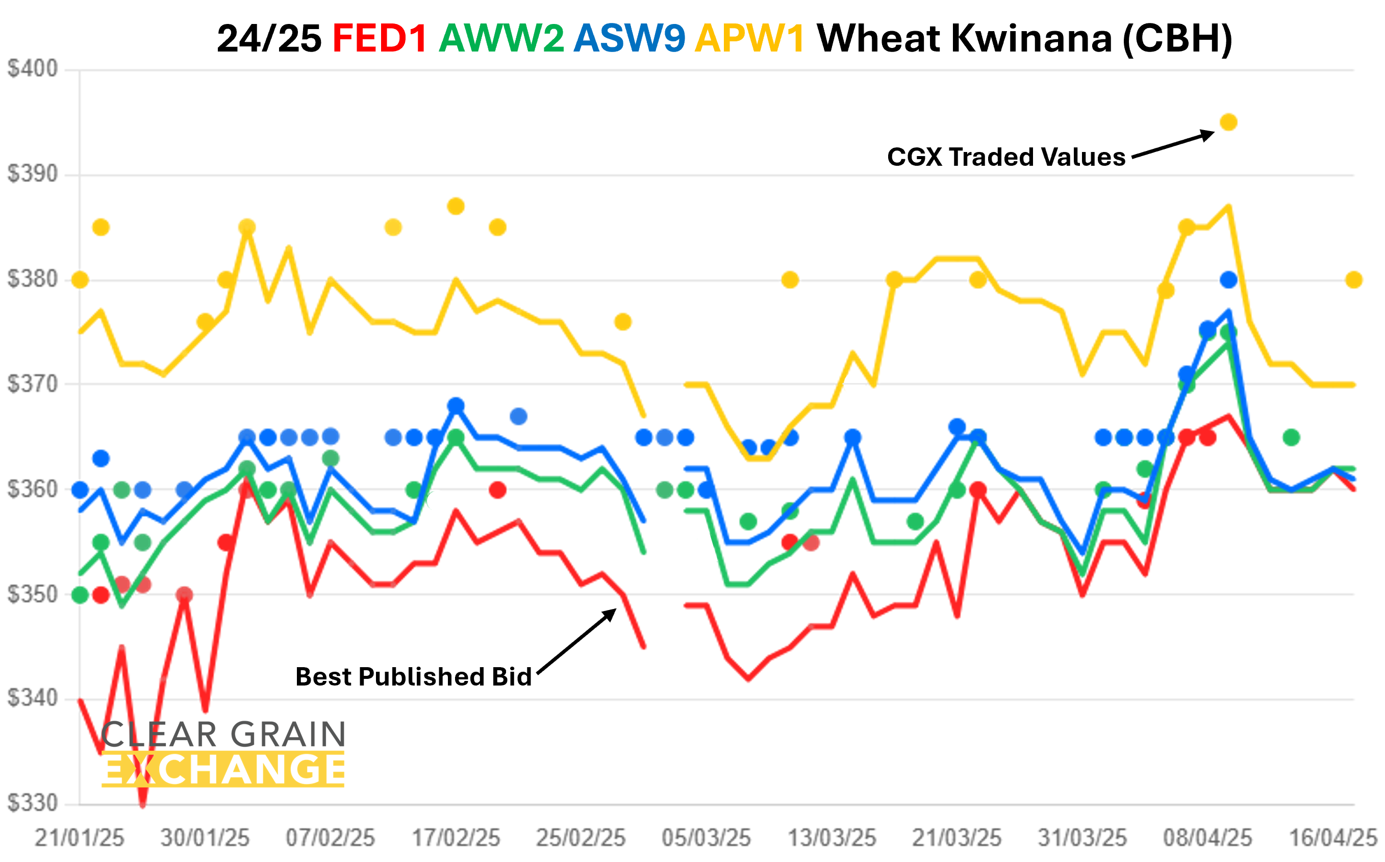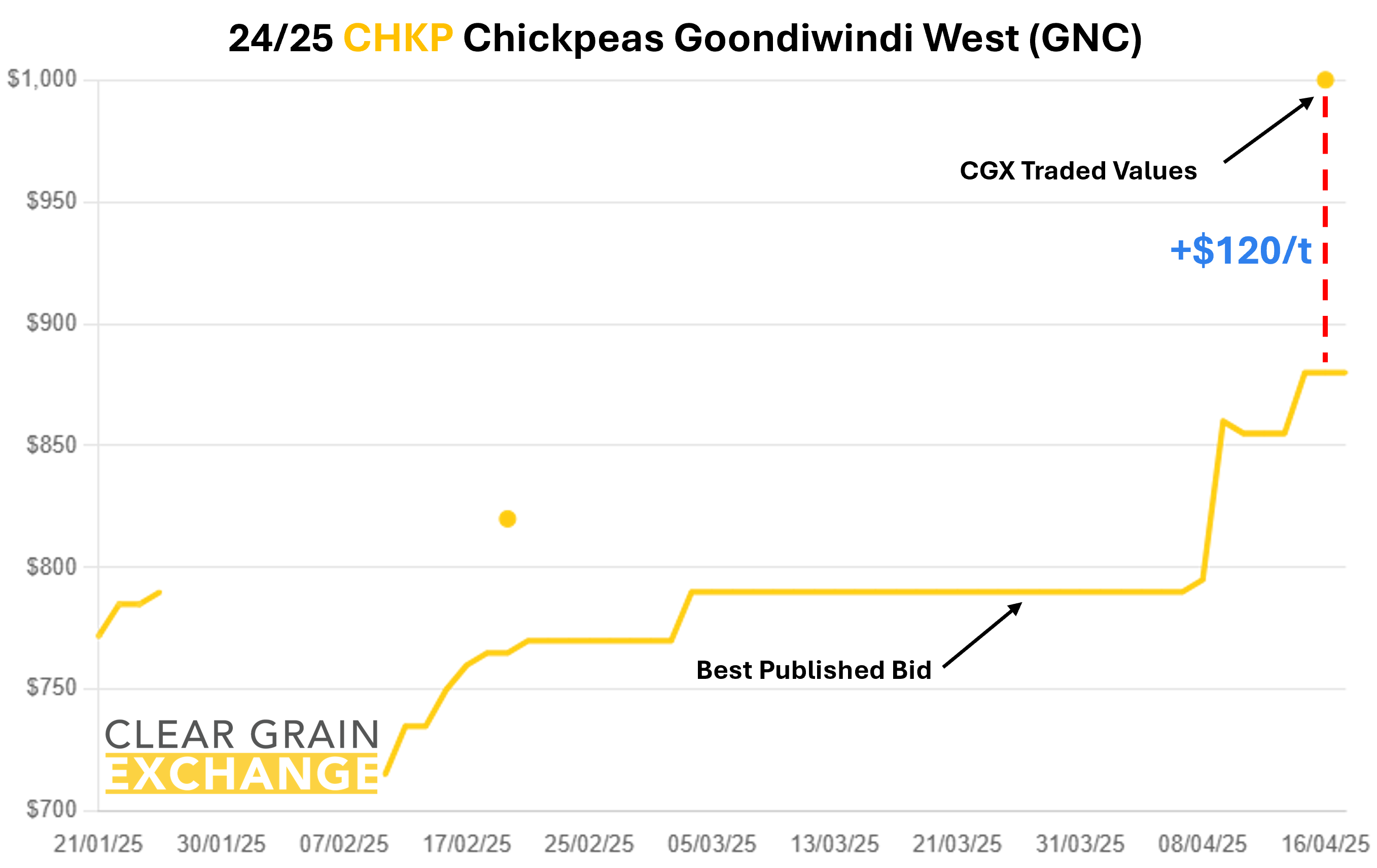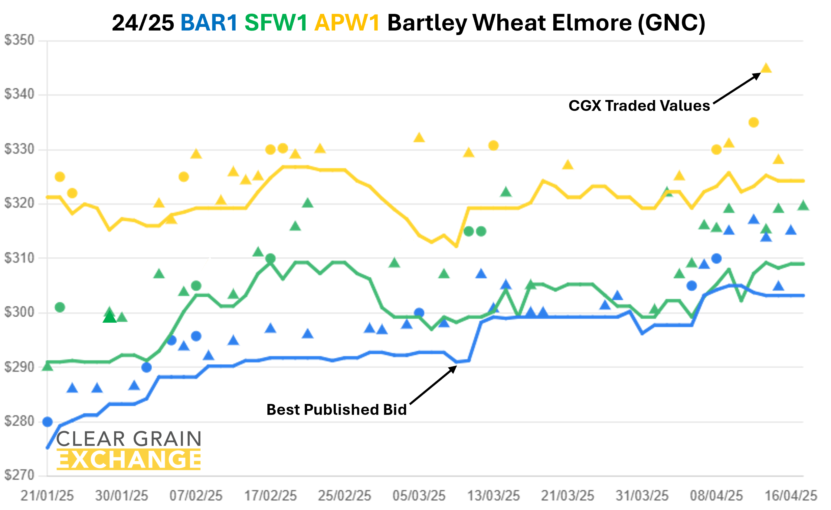Prices traded on Clear Grain Exchange are regularly well above best published bids as buyers bid up to secure the grain they can see offered for sale.