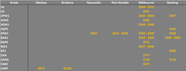 Note: GTA location differentials are used to convert prices to a port equivalent price, actual freight rates can differ particularly in the eastern states. You can offer any grade for sale to create demand.