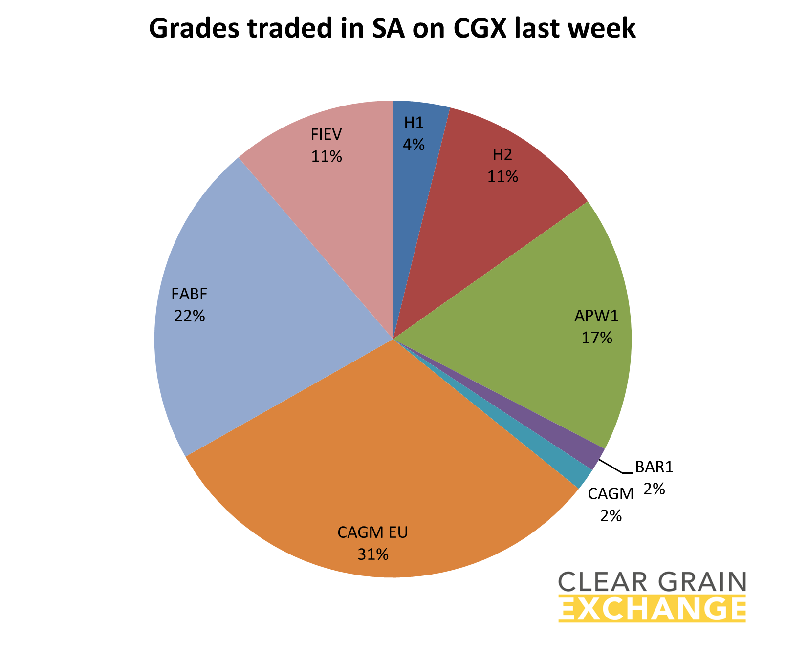 86 sellers sold grain through CGX across 95 transactions - more were offering grain for sale (706 and 1,174 respectively week prior)
