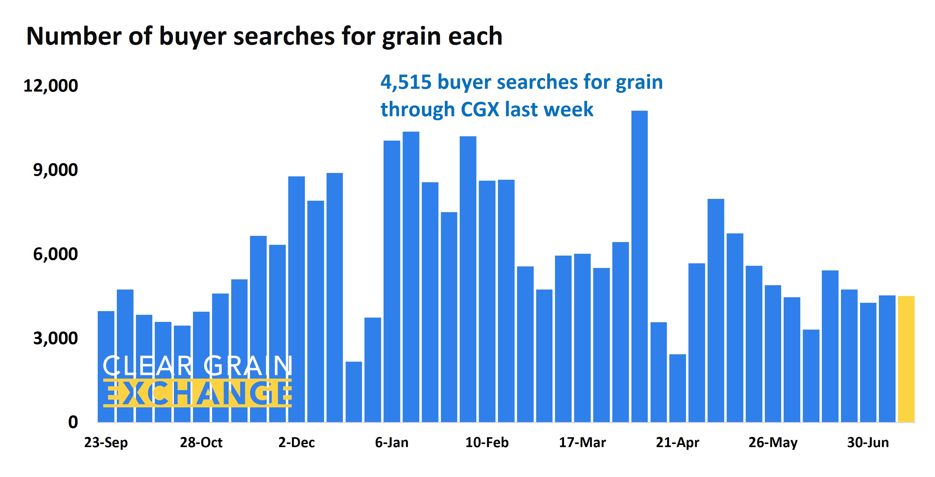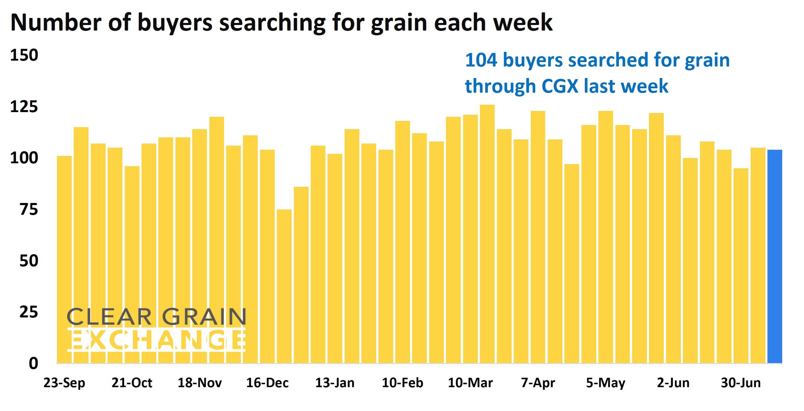 There are plenty of buyers that want Australian grain. Just last week 38 buyers bid for grain offered for sale on the exchange, and a total of 104 buyers made 4,515 searches for grain.