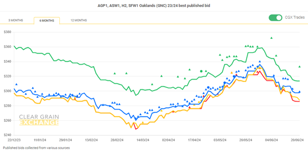 Yet some buyers are needing more grain in the near term and this has seen them bid up to, or closer to, grower offer prices for specific grades and locations.