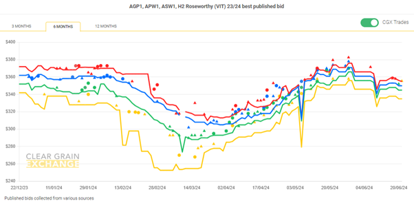 Note: GTA location differentials are used to convert prices to a port equivalent price, actual freight rates can differ particularly in the eastern states. You can offer any grade for sale to create demand.