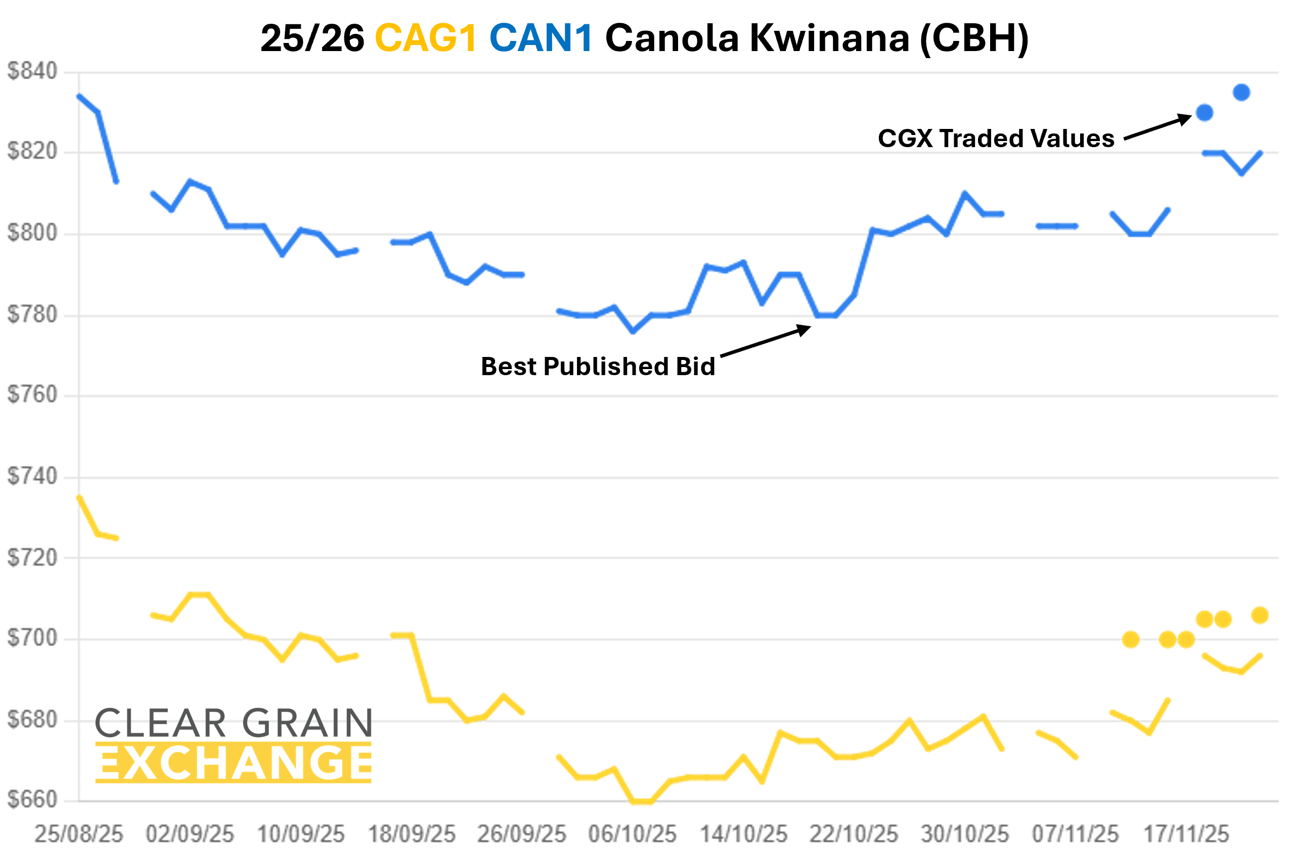 Buyers are logging in and searching grower offer prices on CGX and igrainX in the morning before setting their bids in the broader Australian grain market across cash bids and bid sheets.