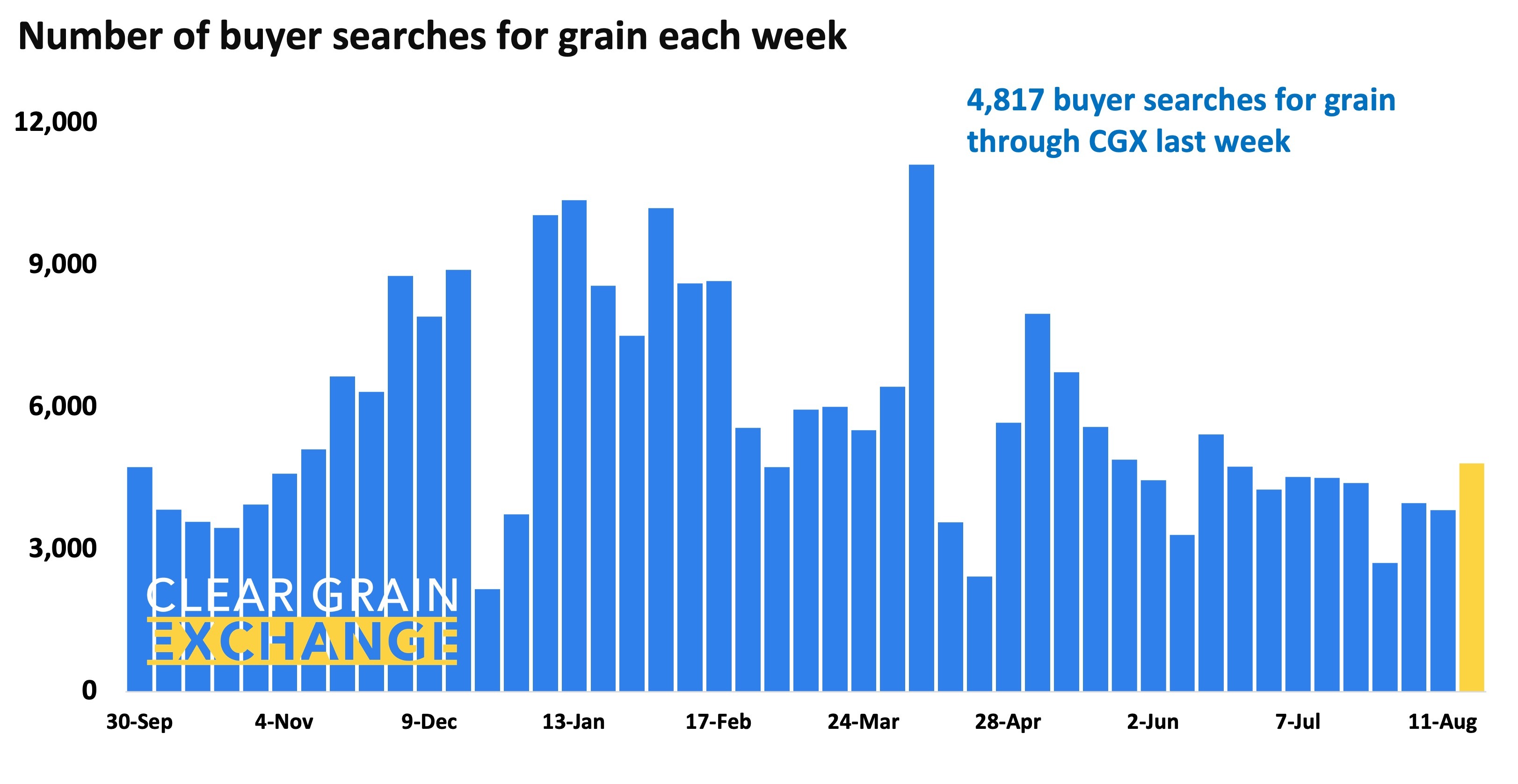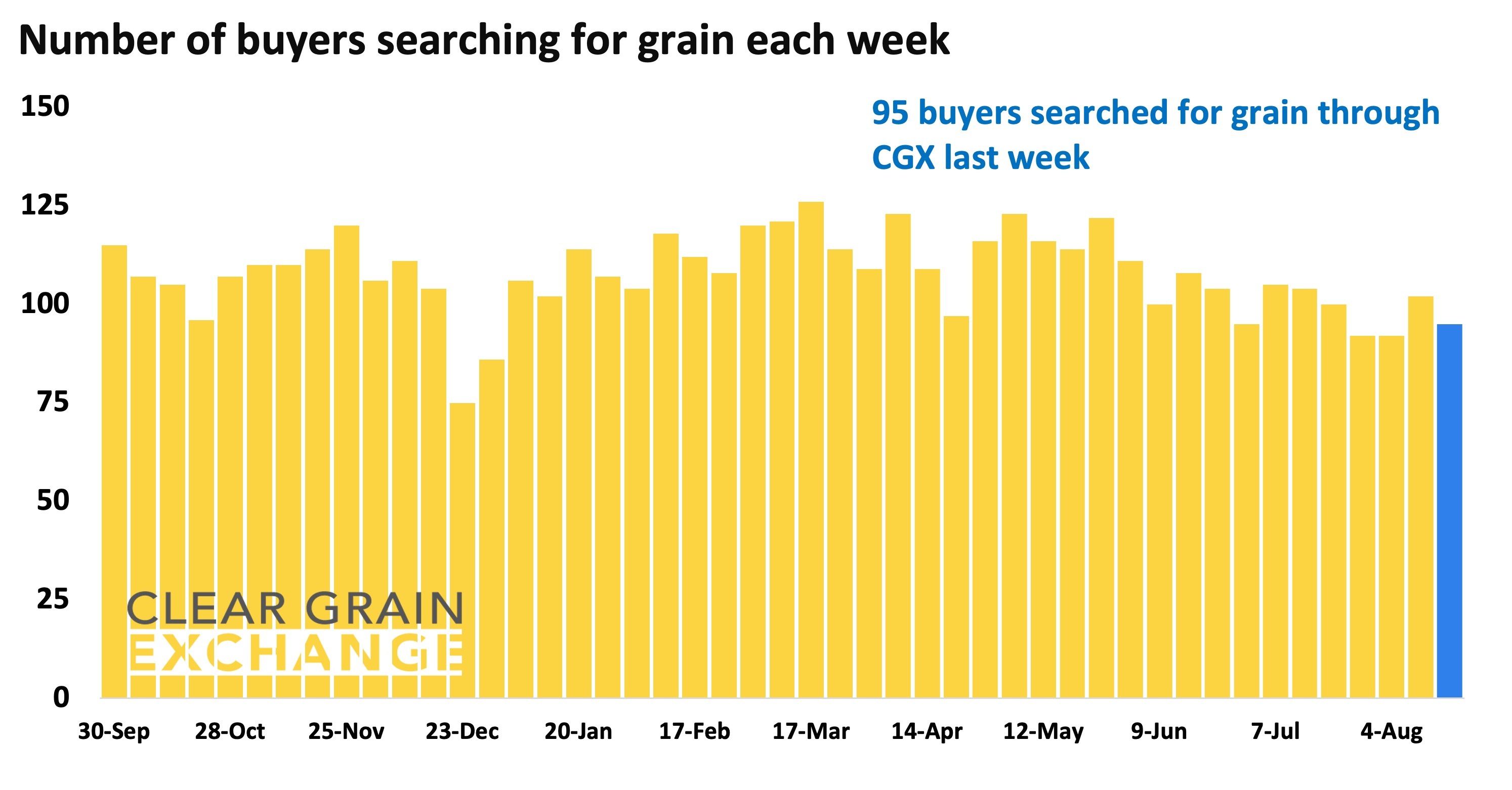There are plenty of buyers that want Australian grain. There are consistently more than 100 buyer organisations searching for grain offered for sale on Clear Grain Exchange (warehoused grain) and igrainX (on-farm grain).
