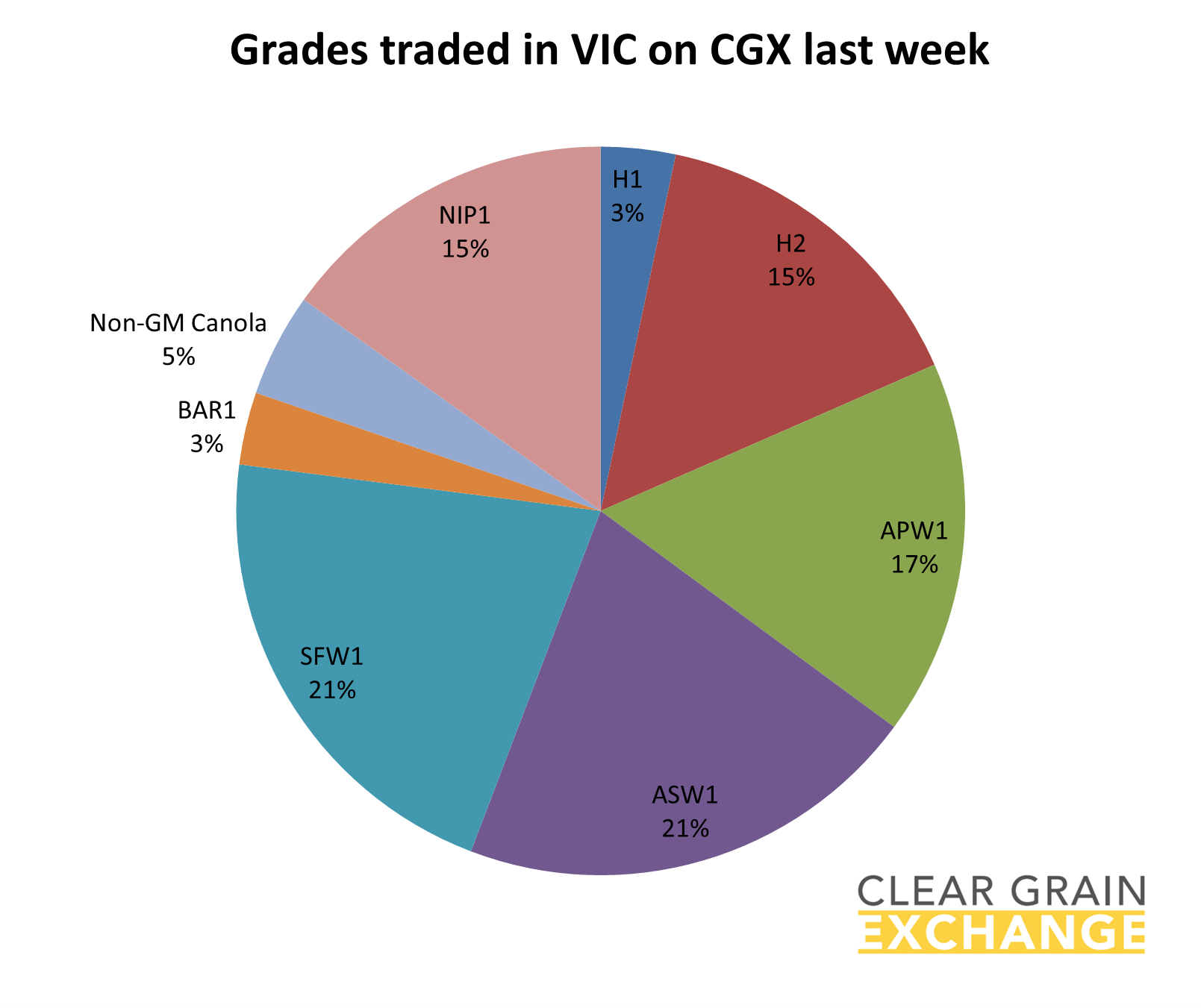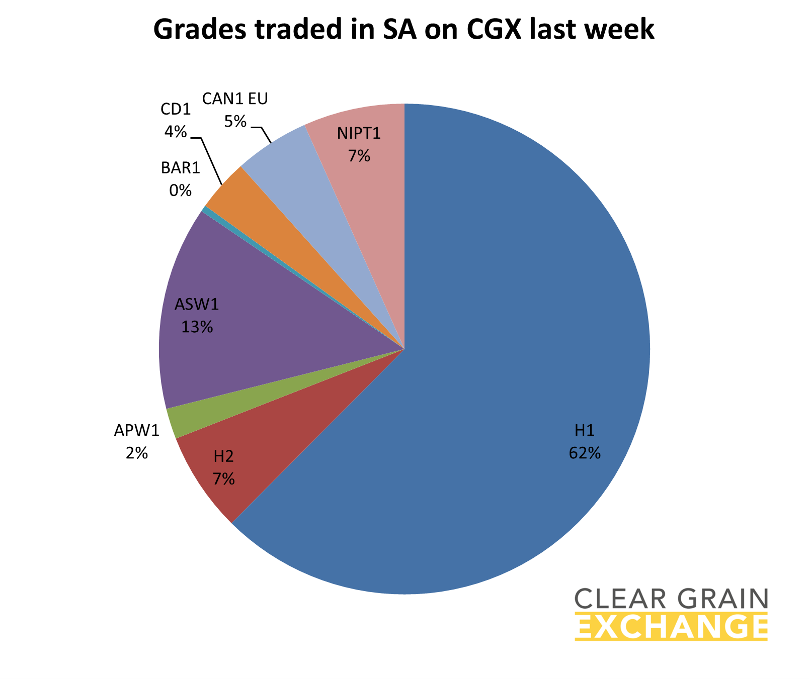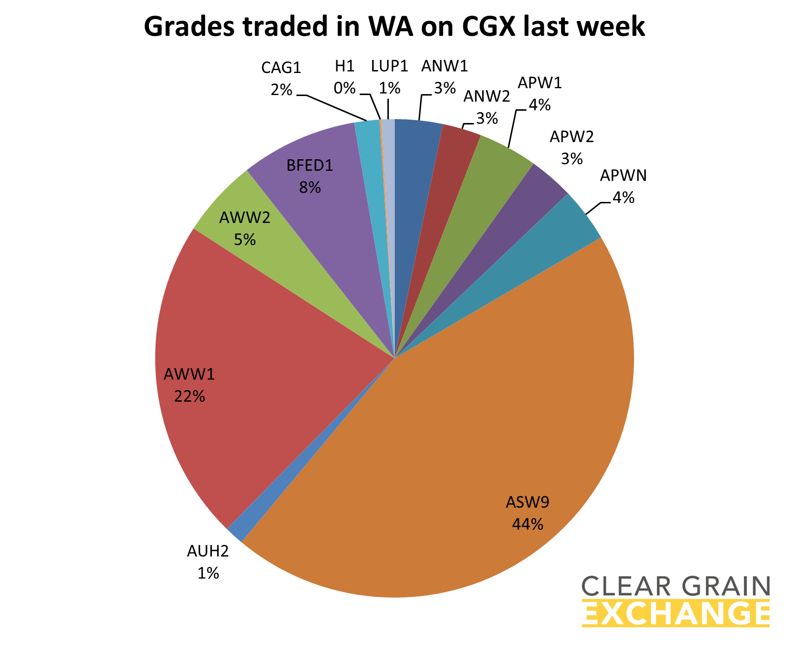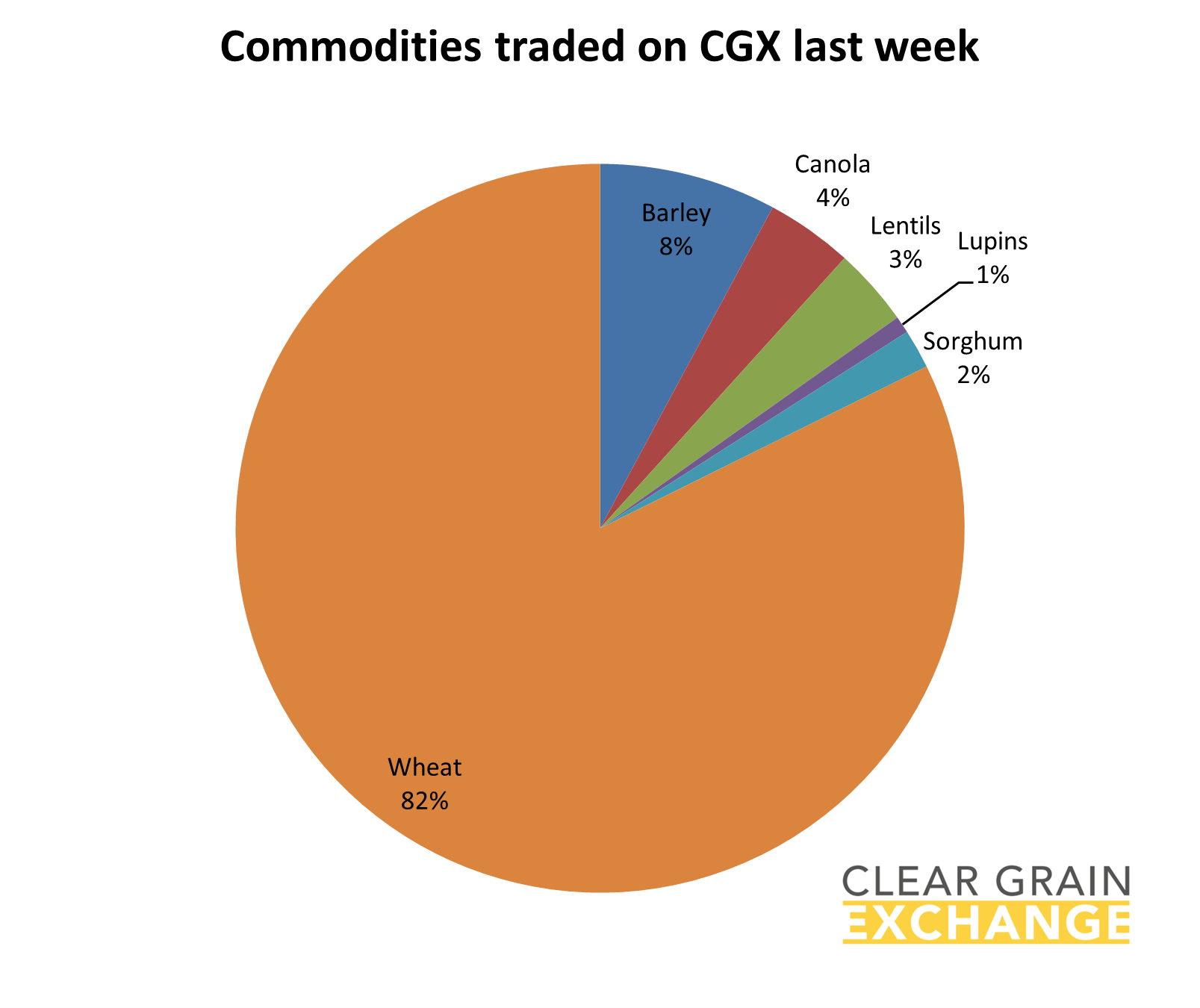 14 grades of wheat made up 82% of all grain traded through the exchange last week with 21 different buyers bidding up to purchase those grades, and more buyers searching for wheat listed for sale.