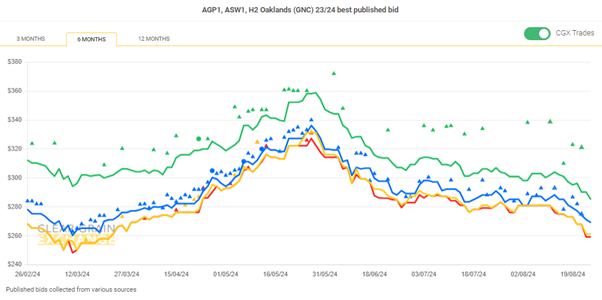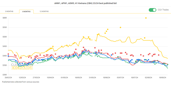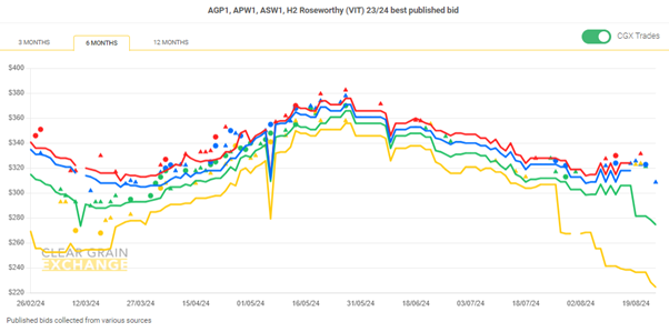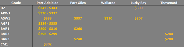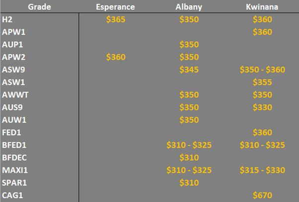 Note: GTA location differentials are used to convert prices to a port equivalent price, actual freight rates can differ particularly in the eastern states. You can offer any grade for sale to create demand.