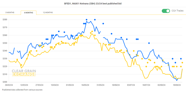 Growers can offer new season grain for sale - during the week season 24/25 was opened at a number of sites for growers to set their price.
