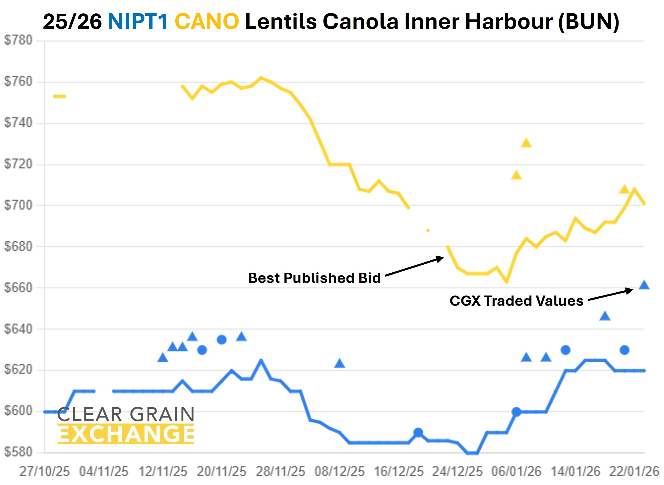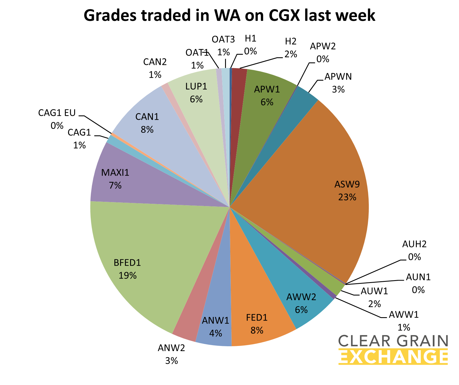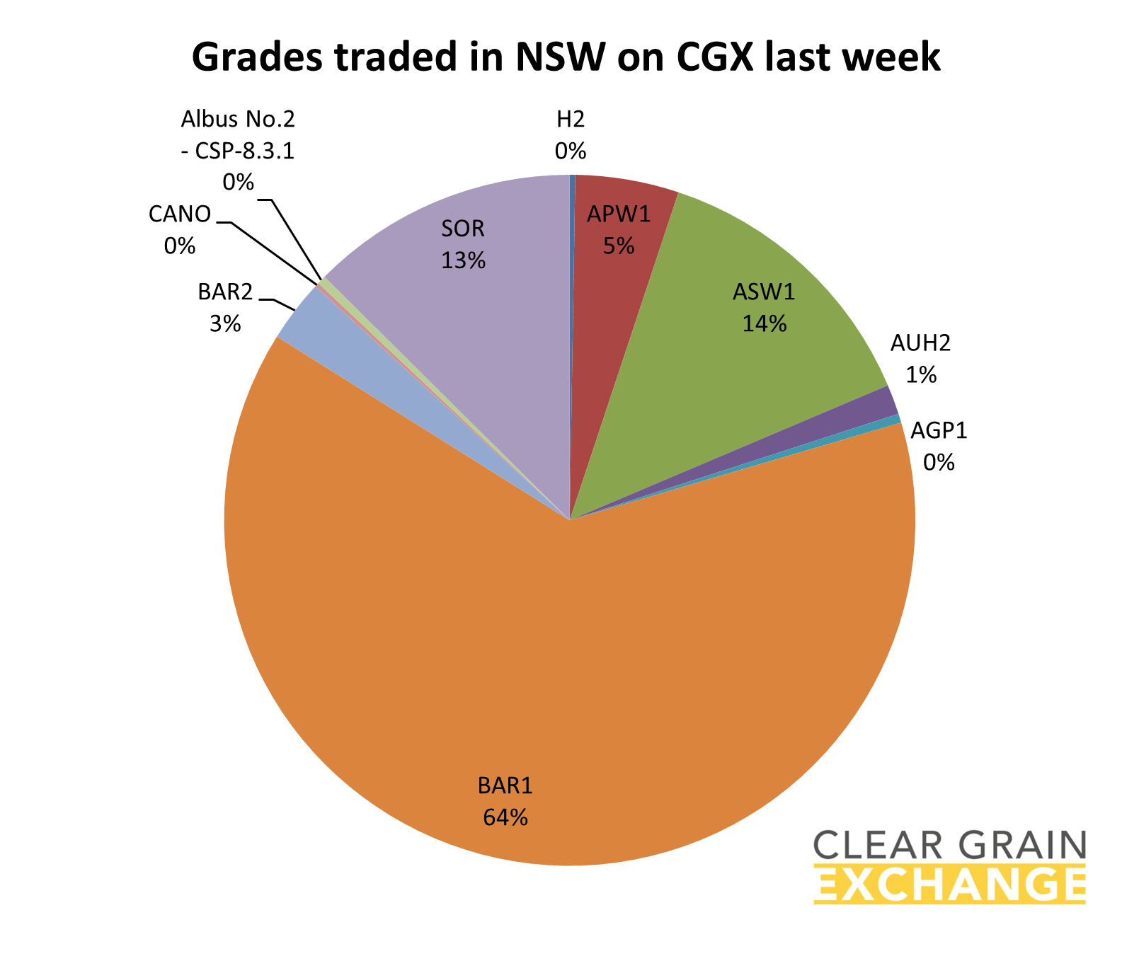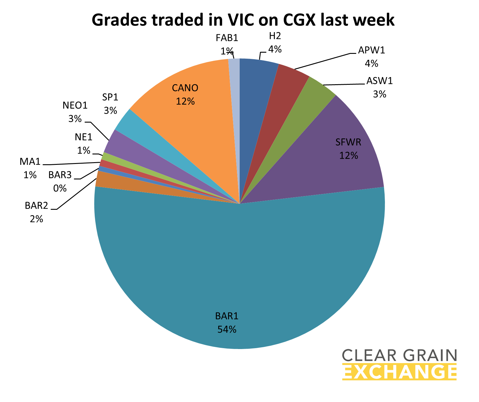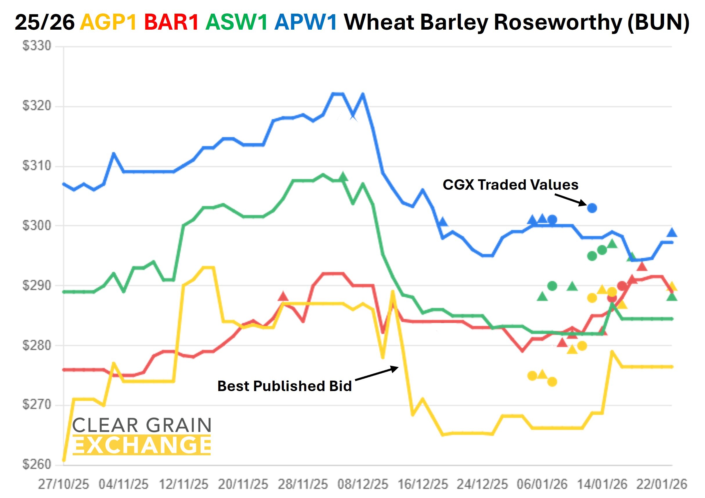 The prices traded through the exchange at a port track (eastern states) or FIS (in WA) level are provided below, but if you're reading this email you will have your own CGX account so login and use it to see what's trading, what's offered, and what's being bid at sites to help you determine the value of grain in your area.