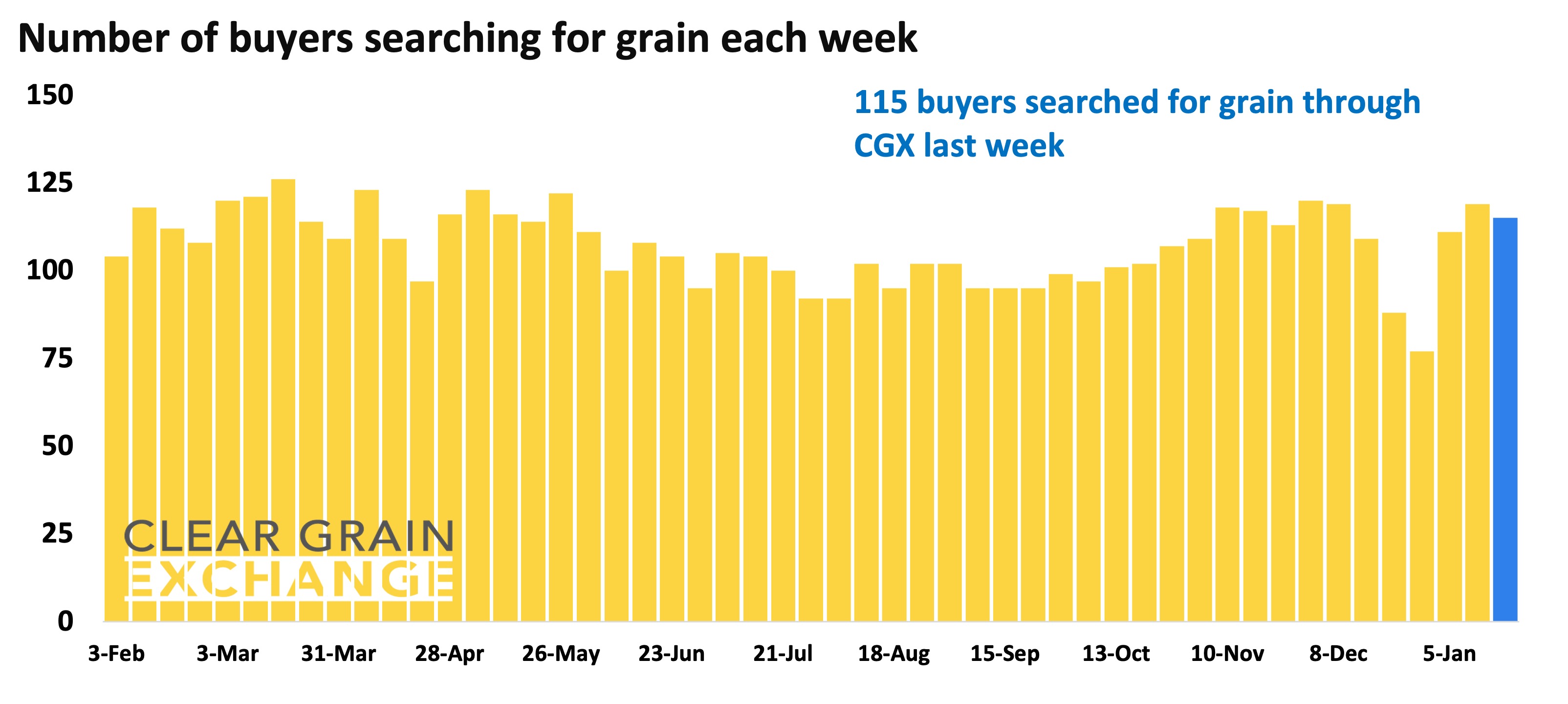 Additionally, 46 buyers were bidding for grain offered for sale and 115 buyers made 8,078 searches for grain offered for sale.