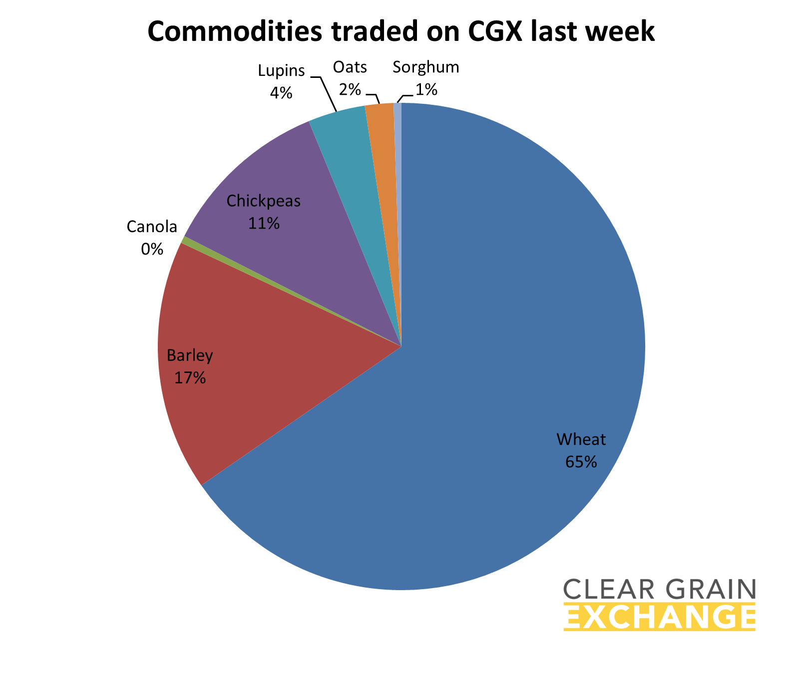 7 commodities traded - wheat, barley, canola, sorghum, oats, lupins, chickpeas