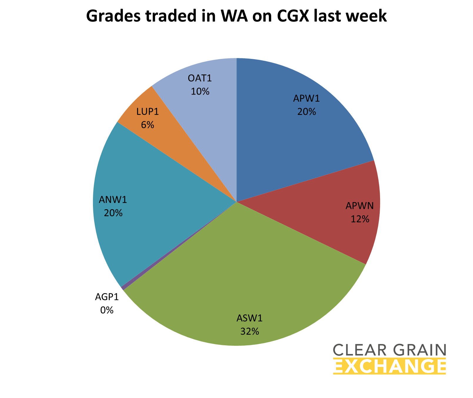 6 commodities traded - wheat, barley, canola, sorghum, lupins, oats