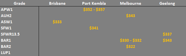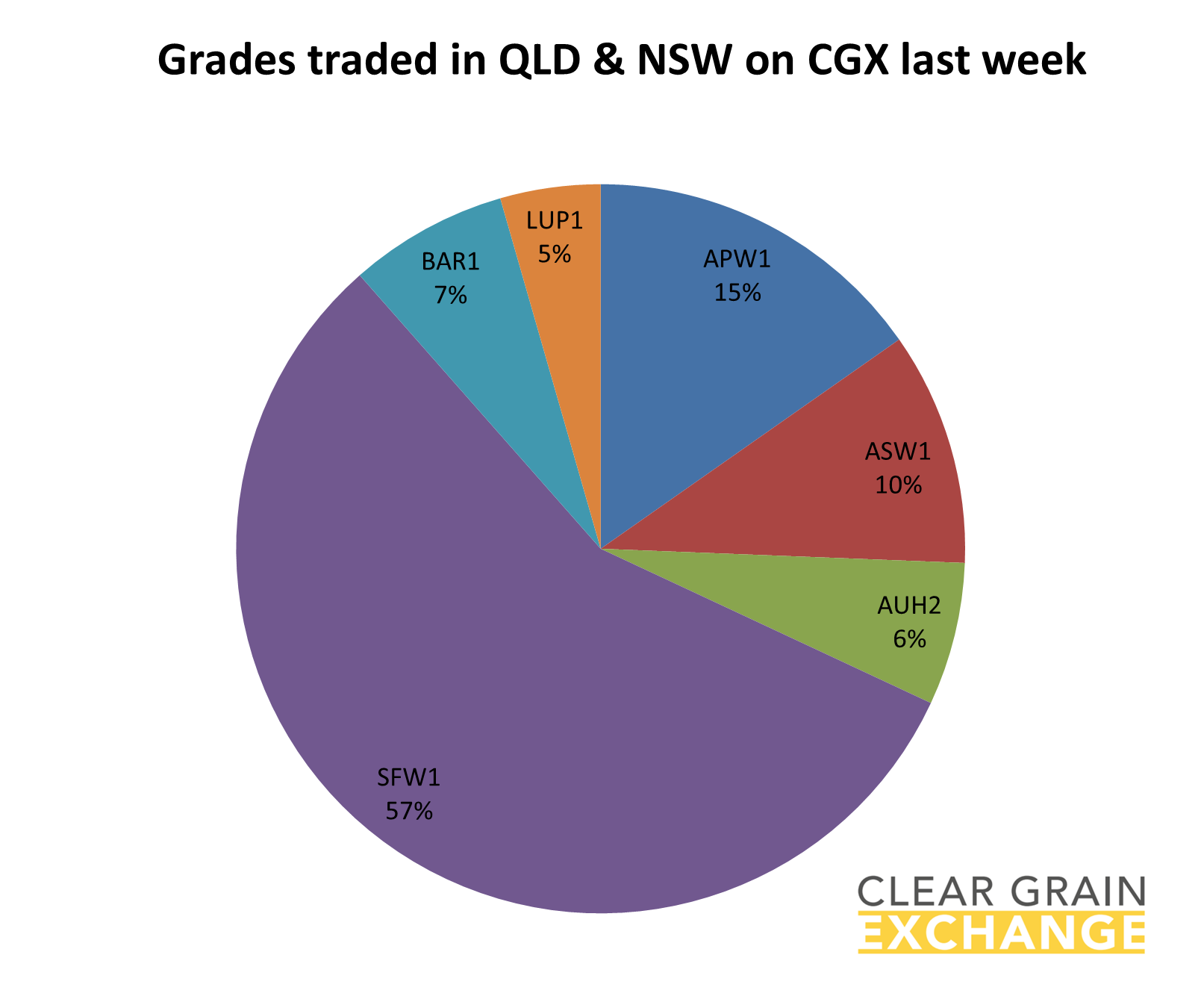 Despite the shorter week, 21 buyers purchased 18 grades of grain across QLD, NSW, VIC, SA and WA providing some valuable data points on grain prices.