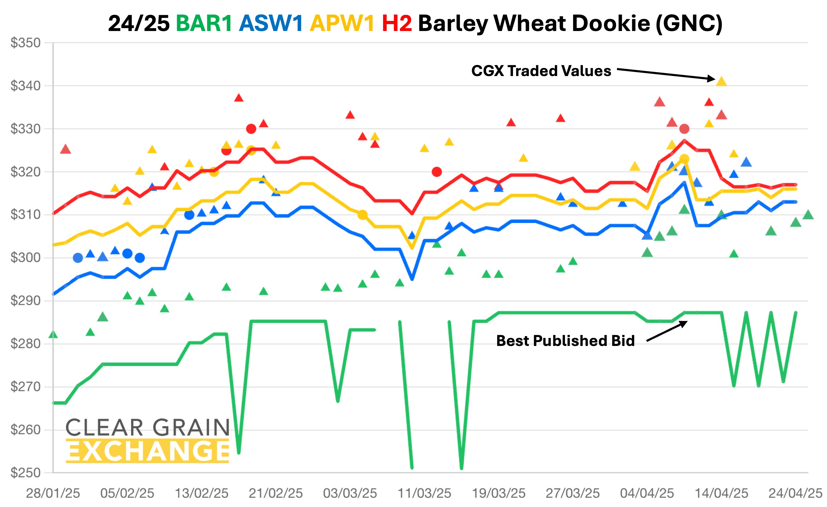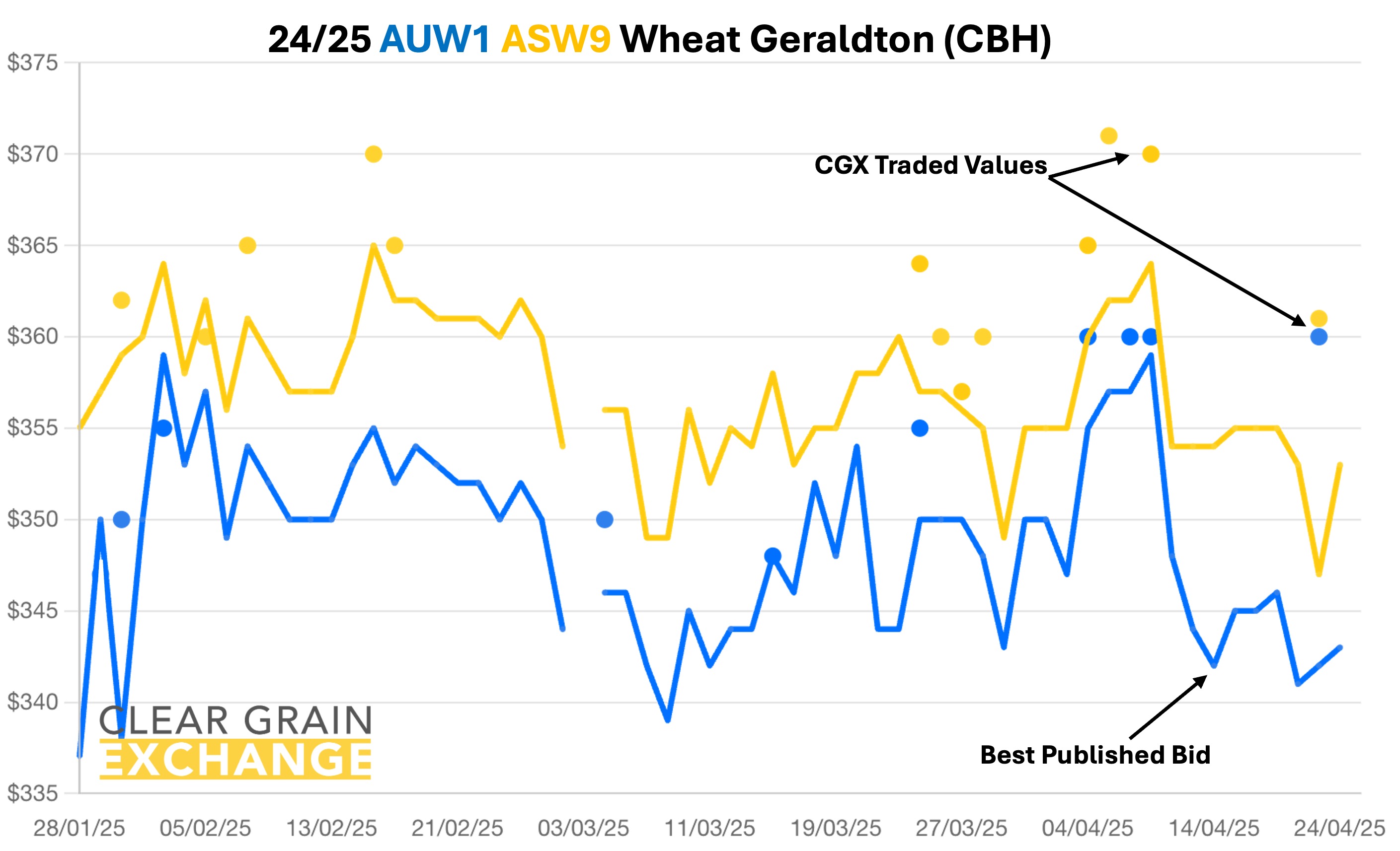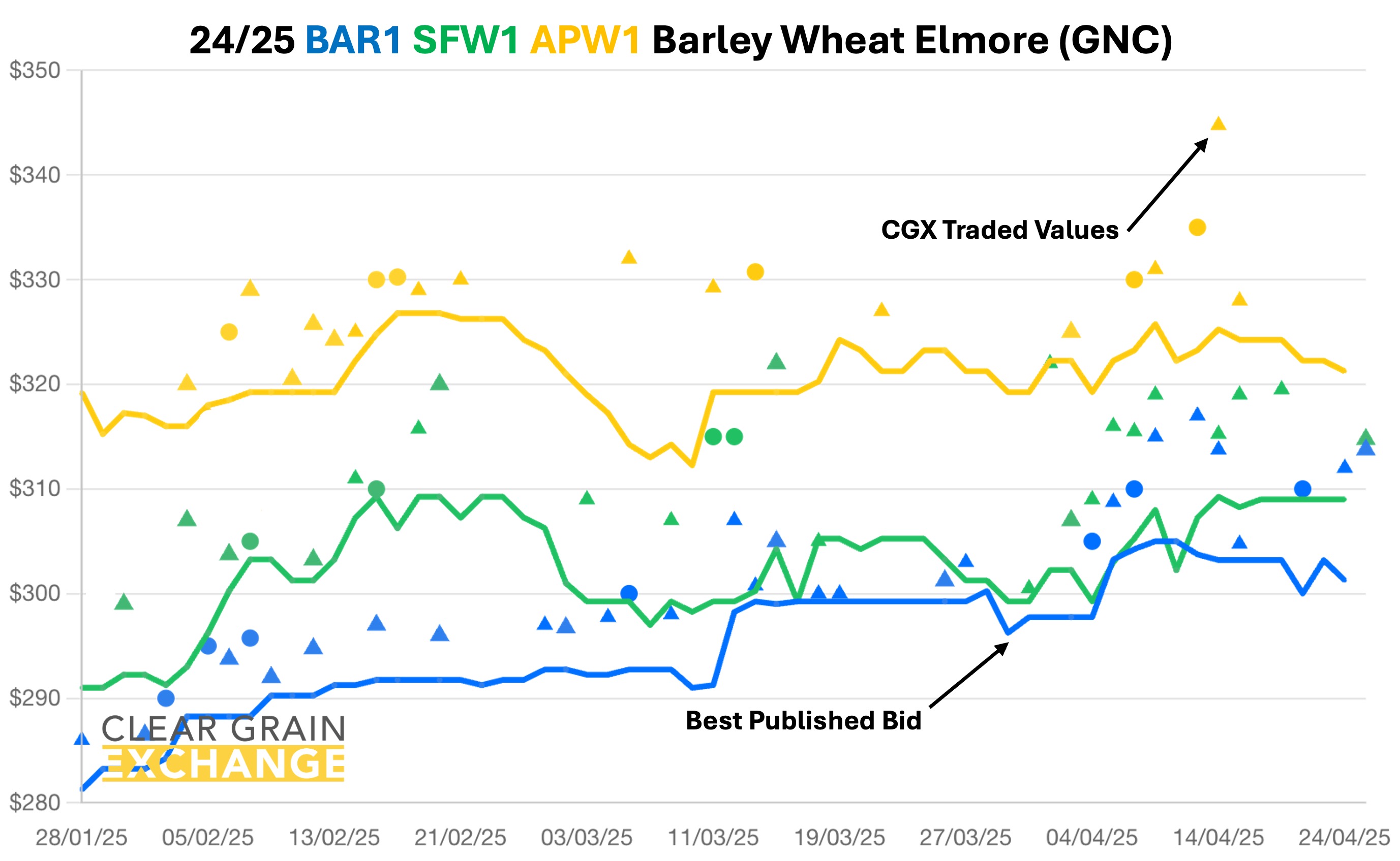 Prices traded on Clear Grain Exchange are regularly well above best published bids as buyers bid up to secure the grain they can see offered for sale.
