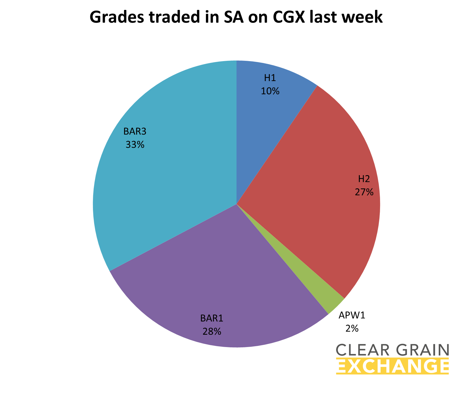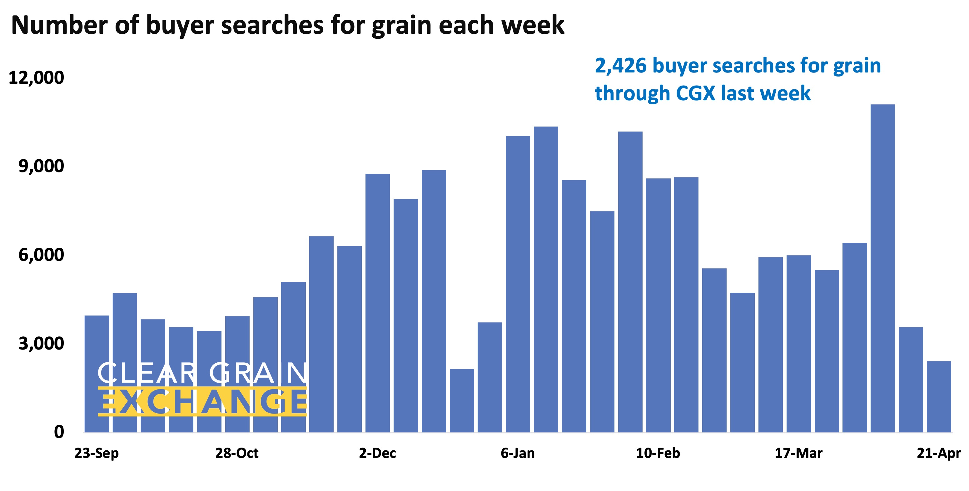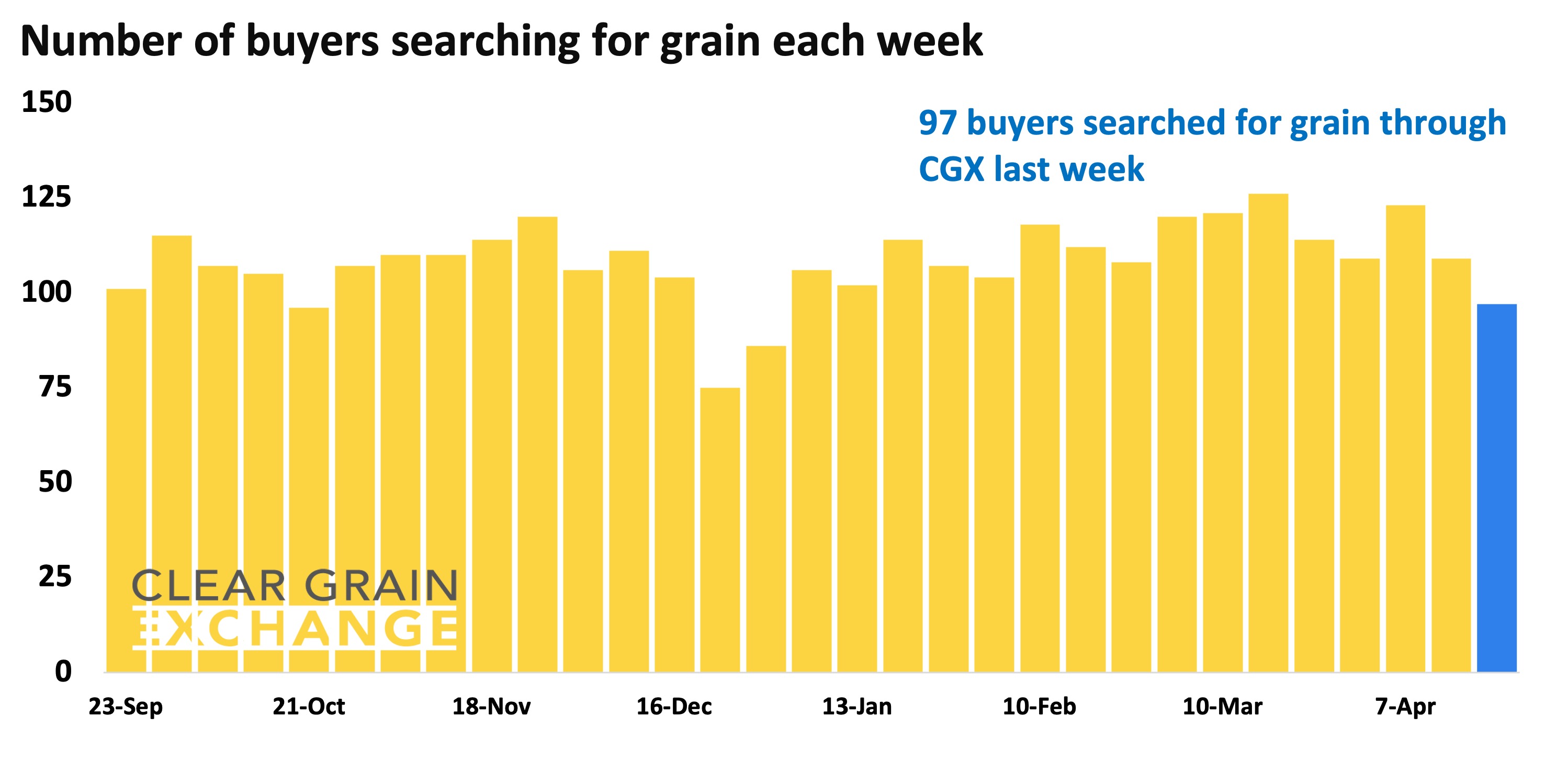 38 buyers bid for grain and a total of 97 buyers made 2,426 searches for grain listed for sale on the exchange.