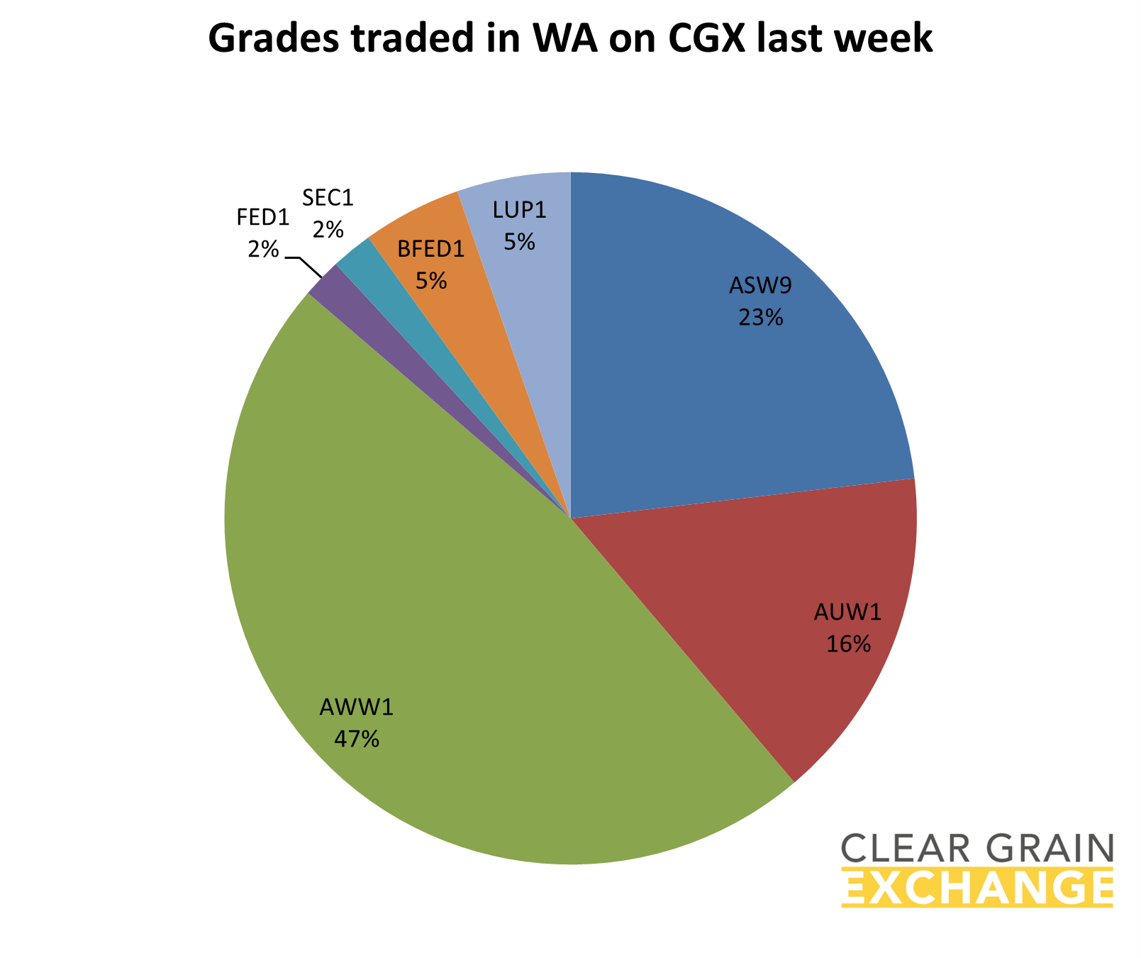 21 buyers met grower offer prices to purchase 18 grades - Wheat, barley, canola, and lupins traded in 12 port zones.