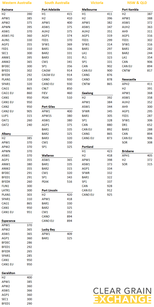 Growers actively adjusting price targets - Growers and agents were actively editing offer prices. Remember you can edit offers at anytime and grain can only trade when the market is open (10:00-10:05am and 8:30-8:35pm AEDT).