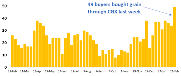 49 buyers purchased grain on CGX - more searching