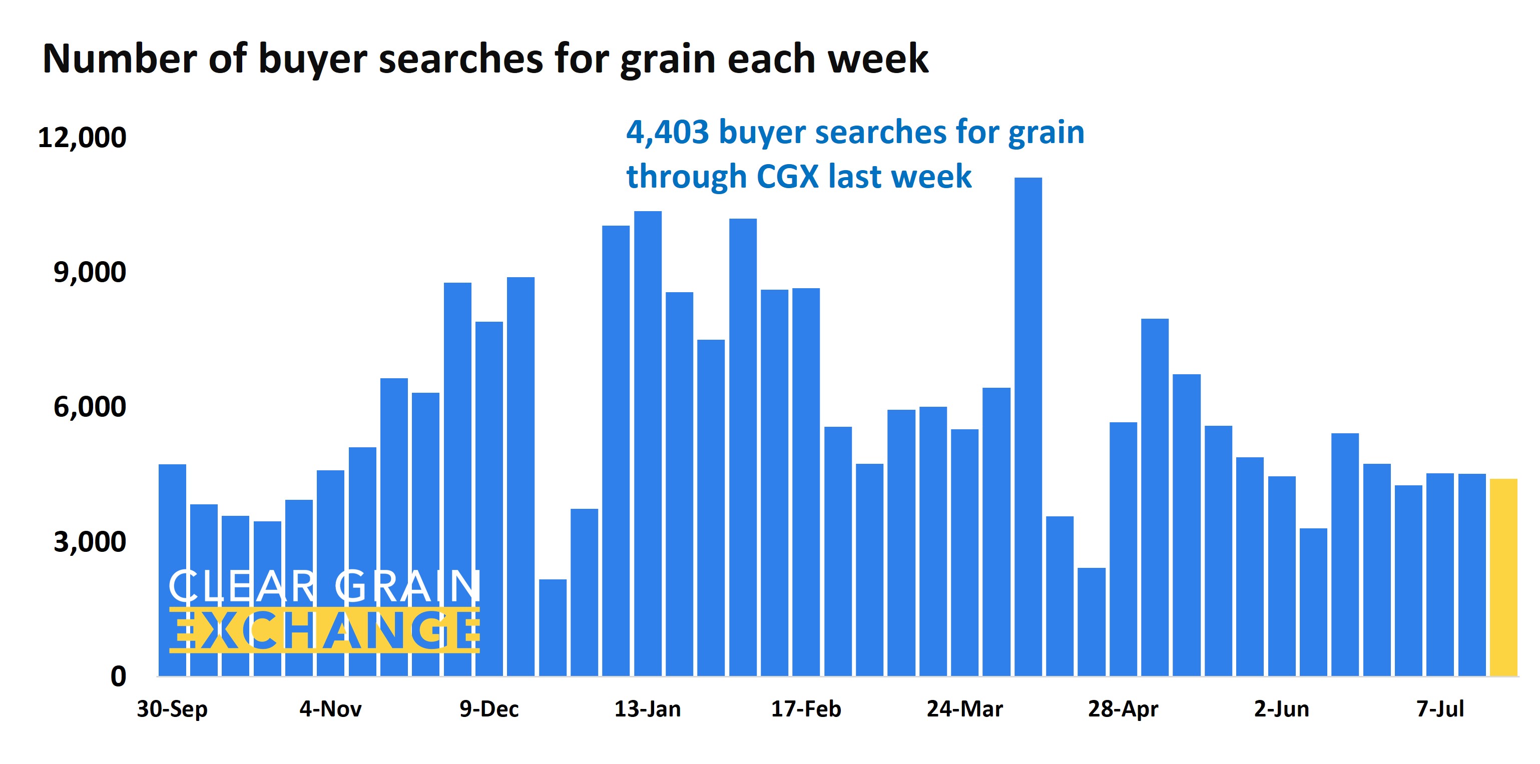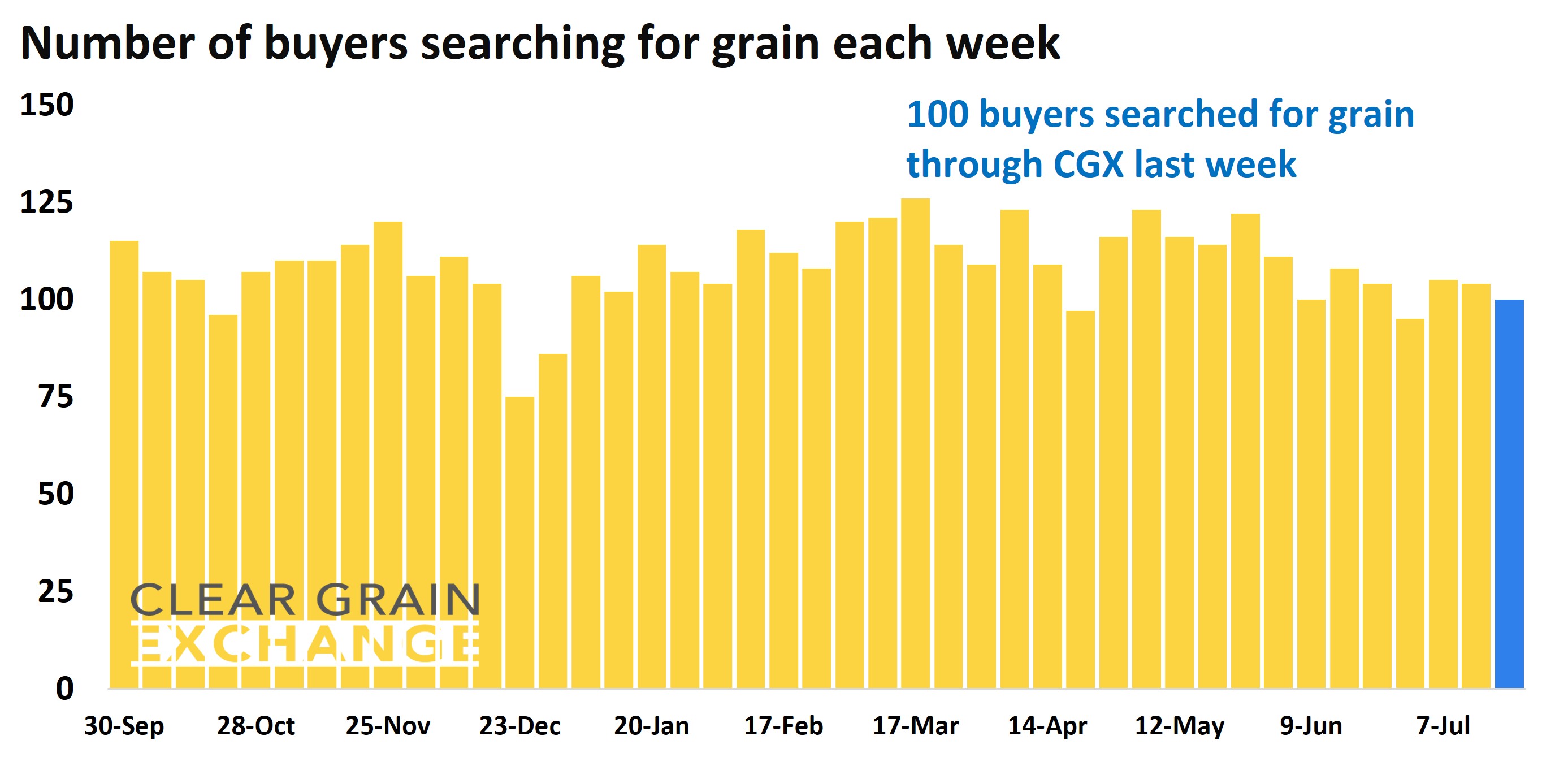 There are plenty of buyers that want Australian grain. Just last week 36 buyers bid for grain offered for sale on the exchange, and a total of 100 buyers made 4,403 searches for grain.