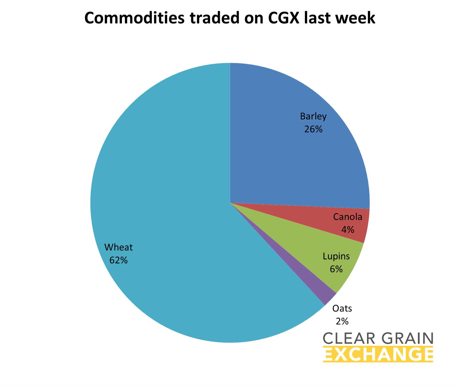 Last week saw wheat grades make up 62% of all grain traded through CGX (warehouse) and igrainX (on-farm).