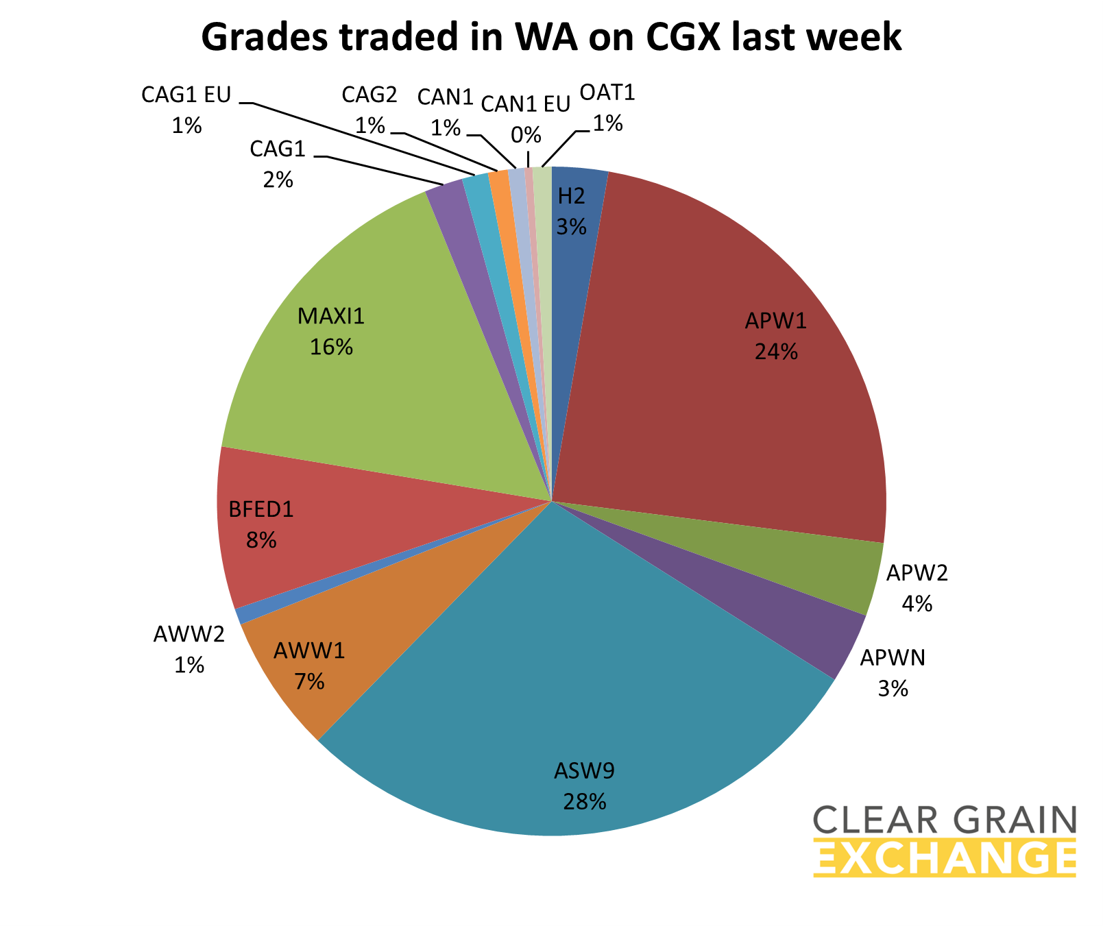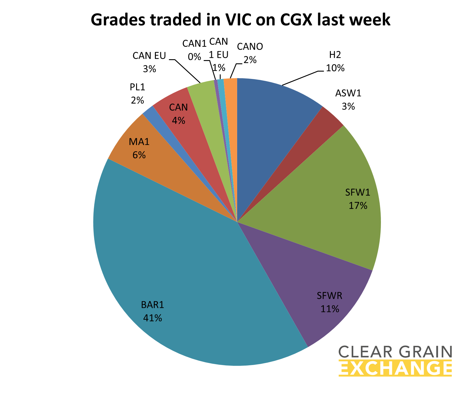 115 different selling businesses were able to achieve their price targets to sell 29 grades of wheat, barley, canola, lentils, lupins, oats and triticale to 33 different buyers last week.