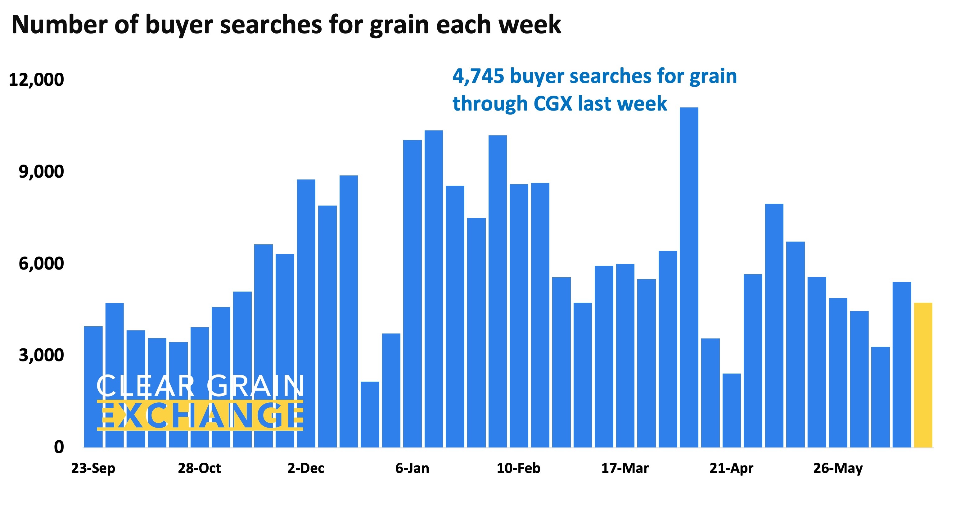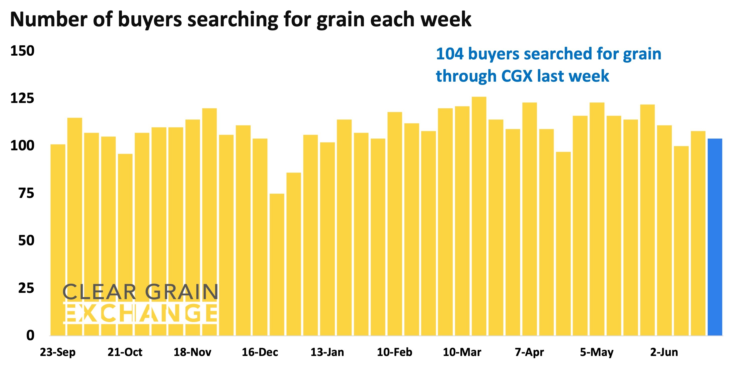 41 buyers bid for grain offered for sale on the exchange last week, and a total of 104 buyers made 4,745 searches for grain.