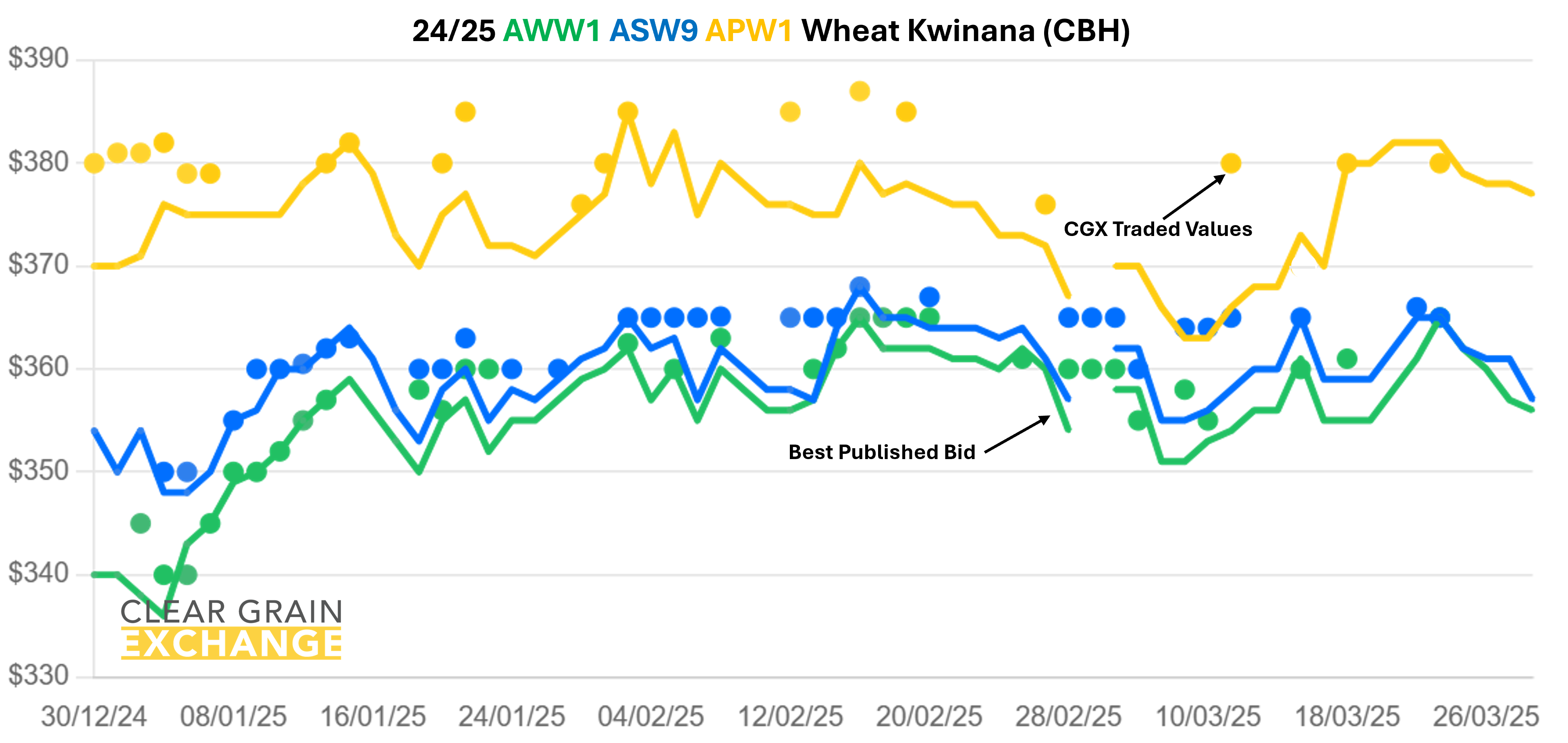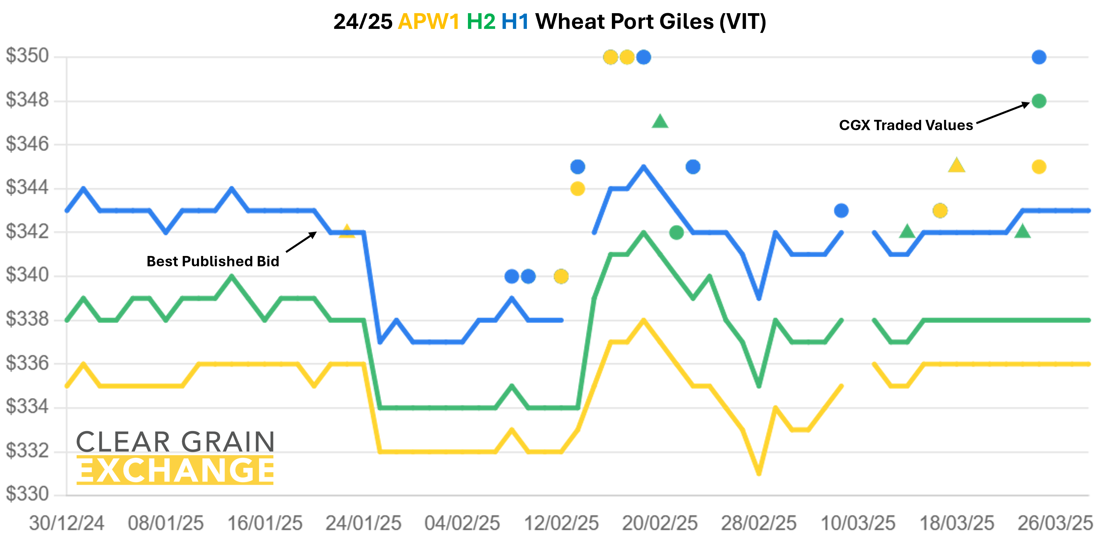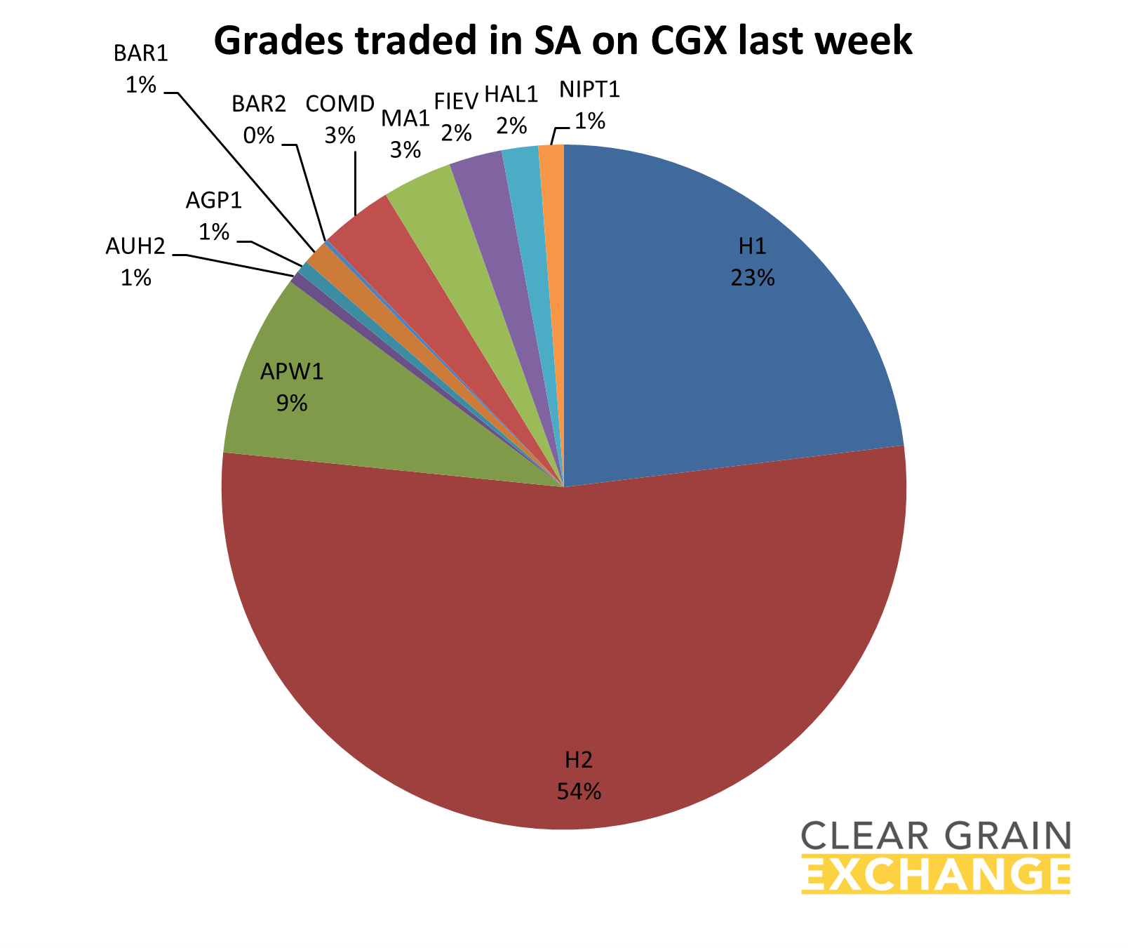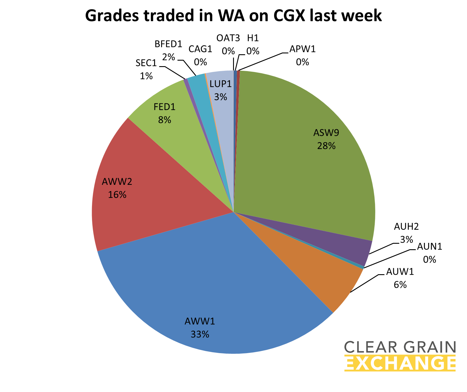 Last week many pockets of demand were across wheat grades with 25 buyer businesses bidding up to purchase 14 grades of wheat across Australia to make up 85% of all grain traded through Clear Grain Exchange (CGX) last week.