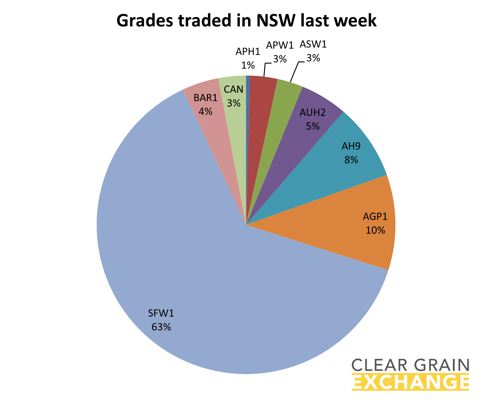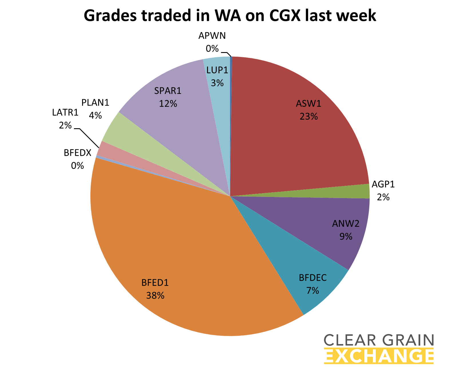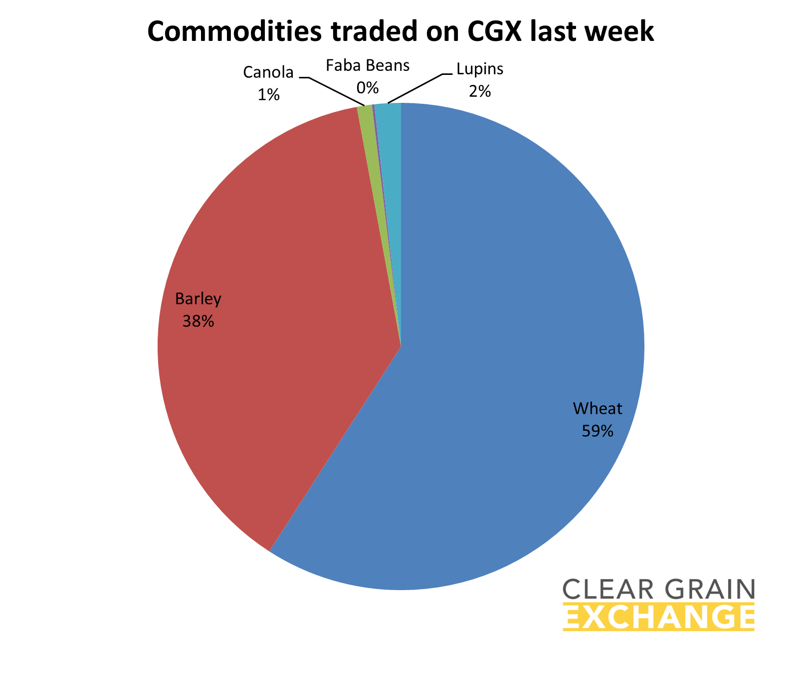 5 commodities traded - wheat, barley, canola, lupins, faba beans