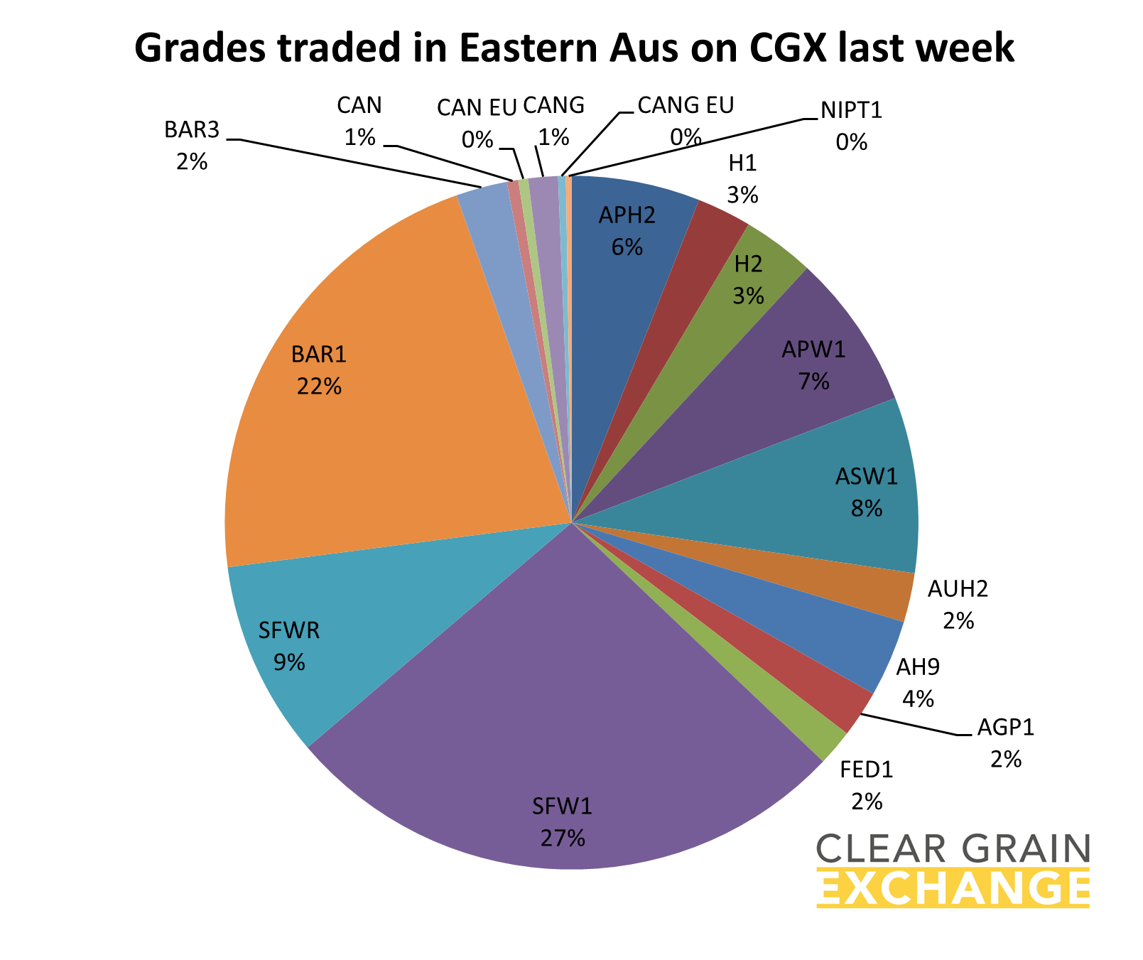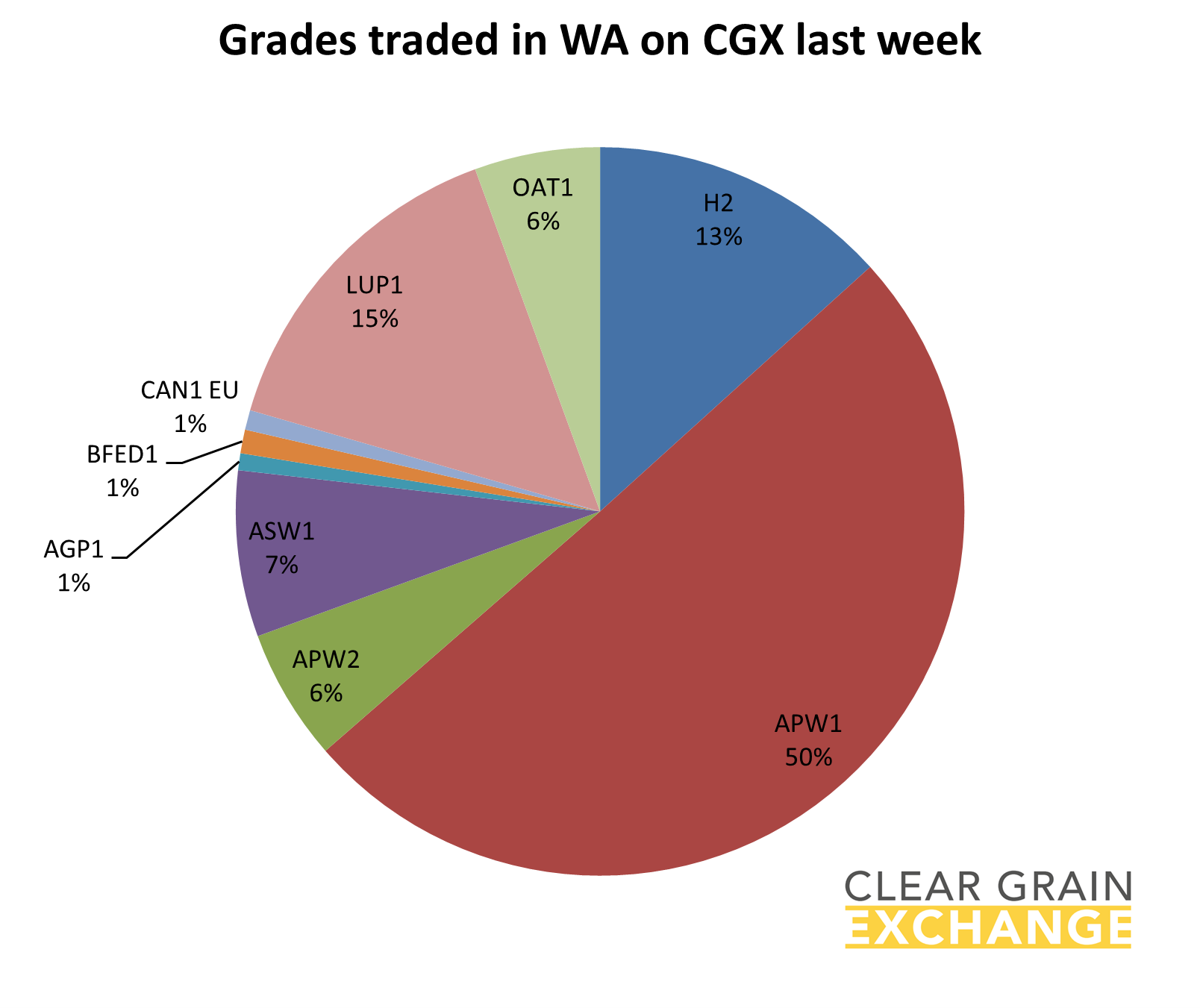 33 different buyers purchased wheat, barley, canola, oats, lupins, faba beans and lentils through Clear Grain Exchange last week with more searching for grain offered for sale.