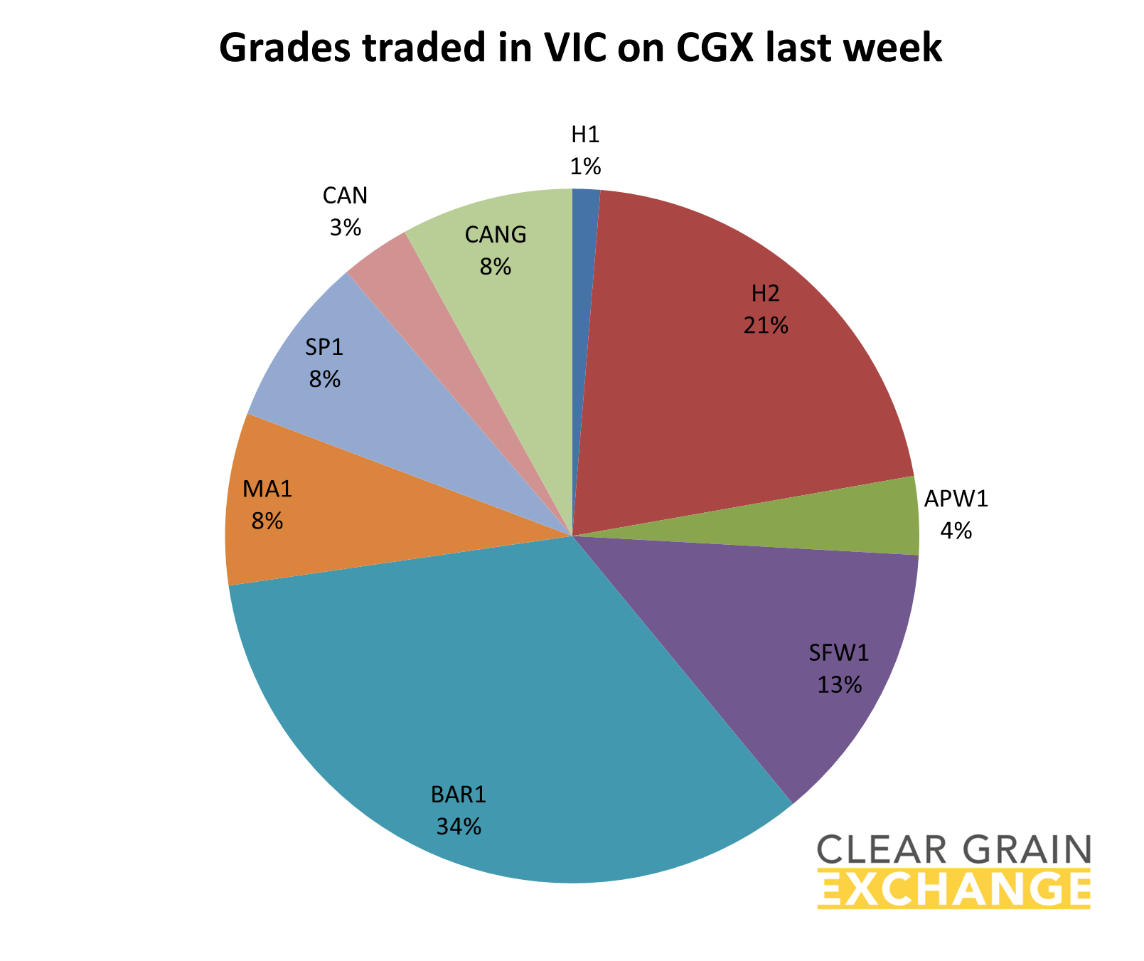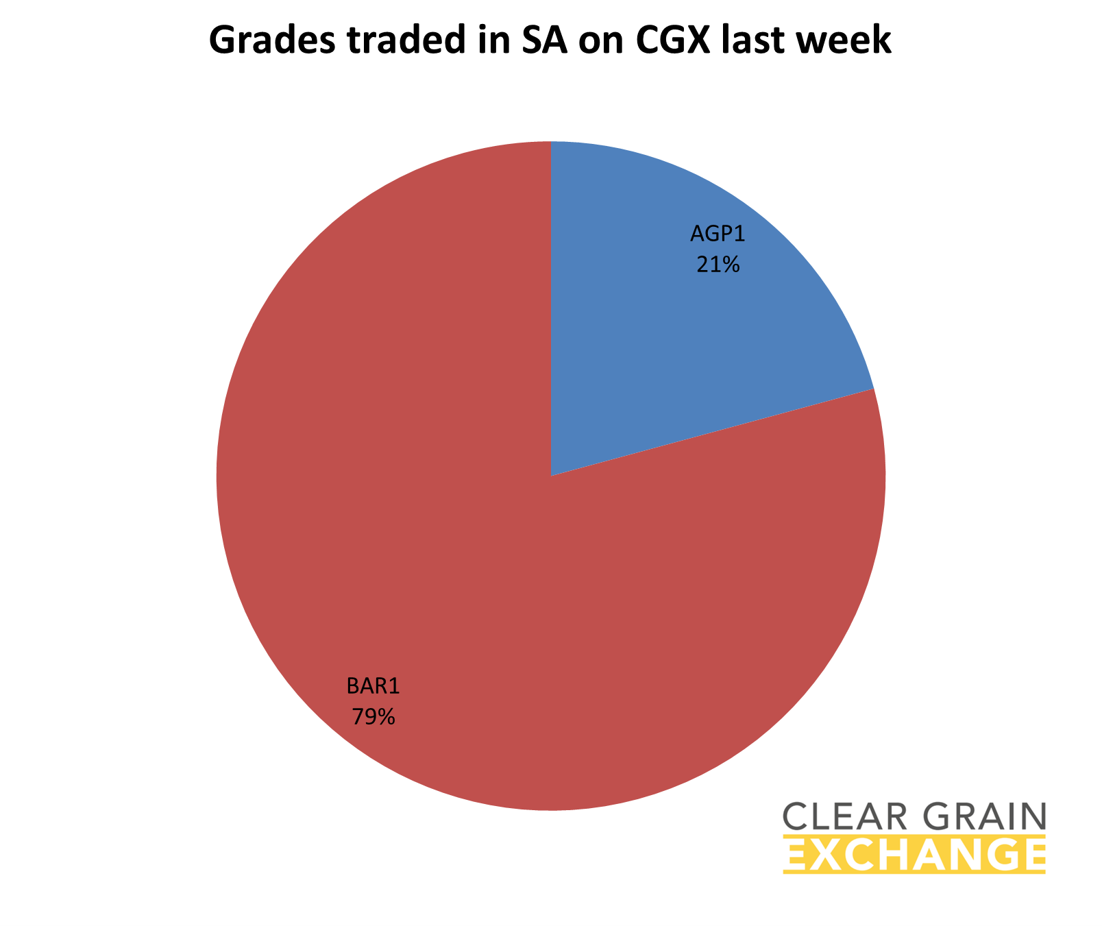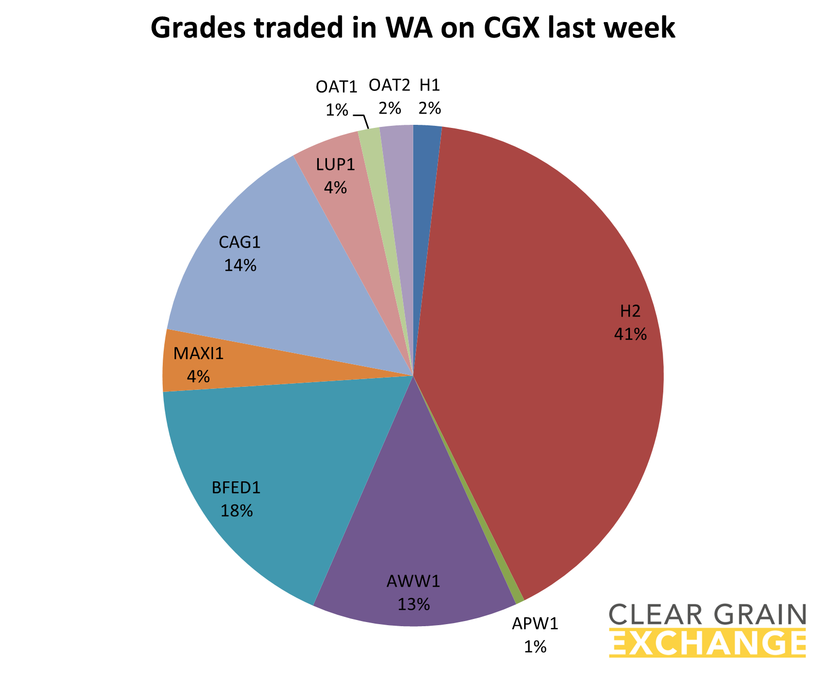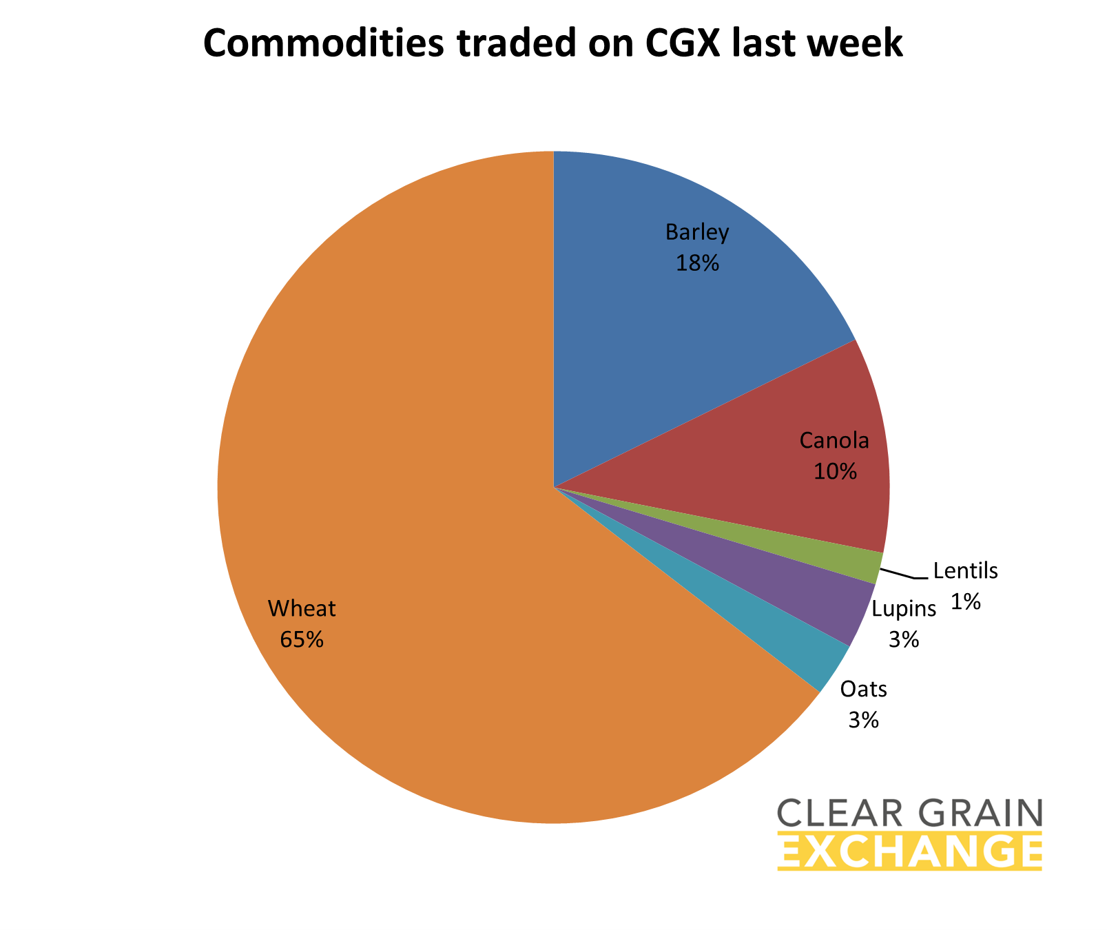 Last week saw wheat grades make up 62% of all grain traded through CGX (warehouse) and igrainX (on-farm).